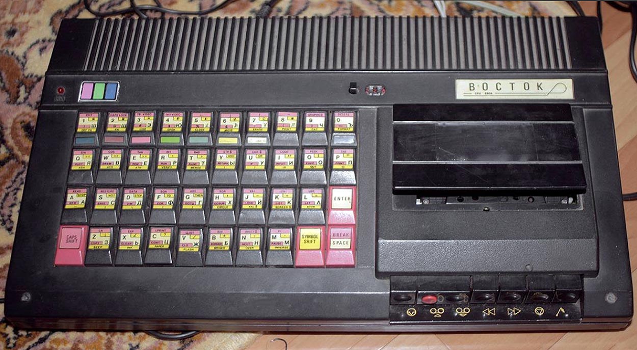 Бытовой компьютер "Восток" БК-48-1 выпускался на предприятии "Восток-Информатика" с 1991 года. Это прямоугольная модель в виде клавиатуры, совмещённой с кассетником.