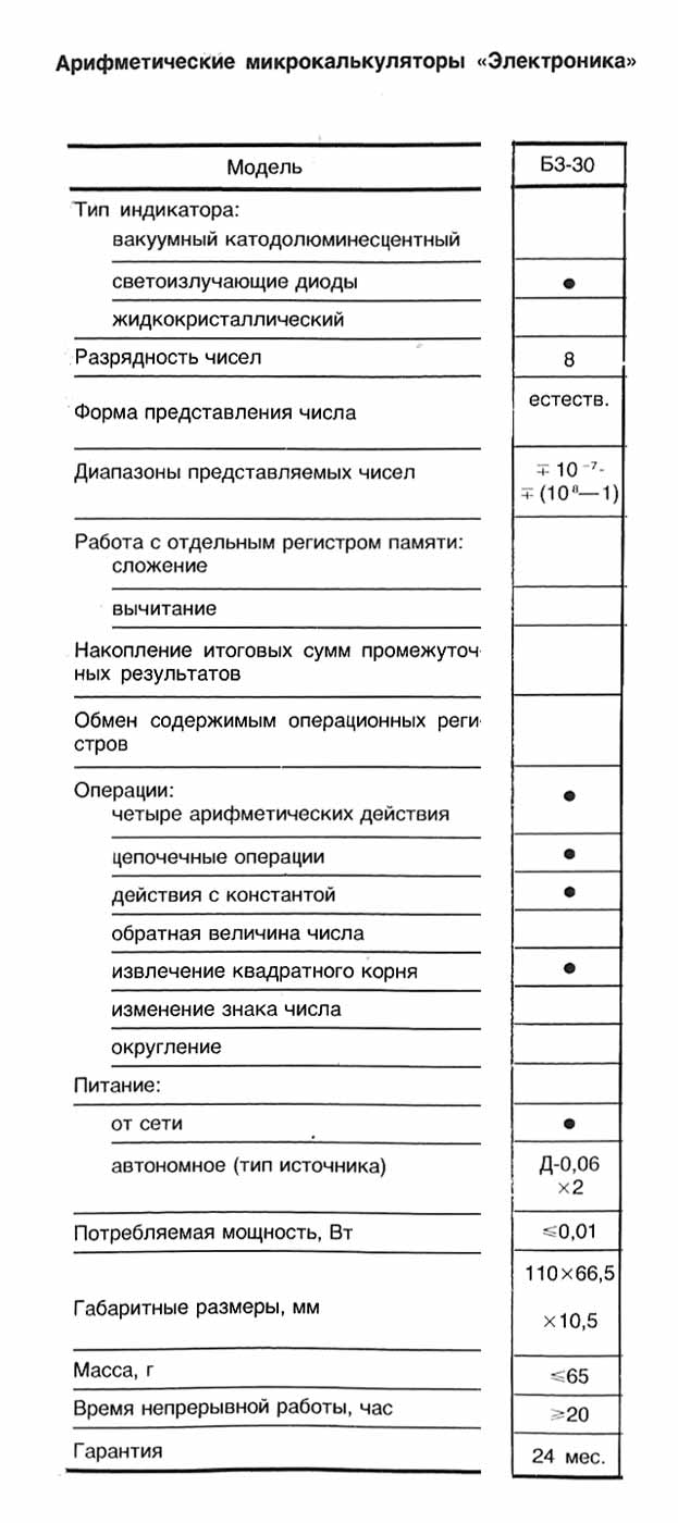 Б3-30" выполняет четыре арифметические операции, извлечение квадратного