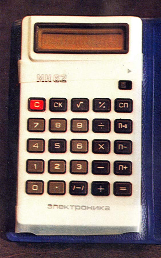Микрокалькулятор "Электроника МК-62" выпускался возможно с 1984 года заводом "Биллур" и Богучарским НПО "Электроника". Видеосюжет. Подробнее о МК.