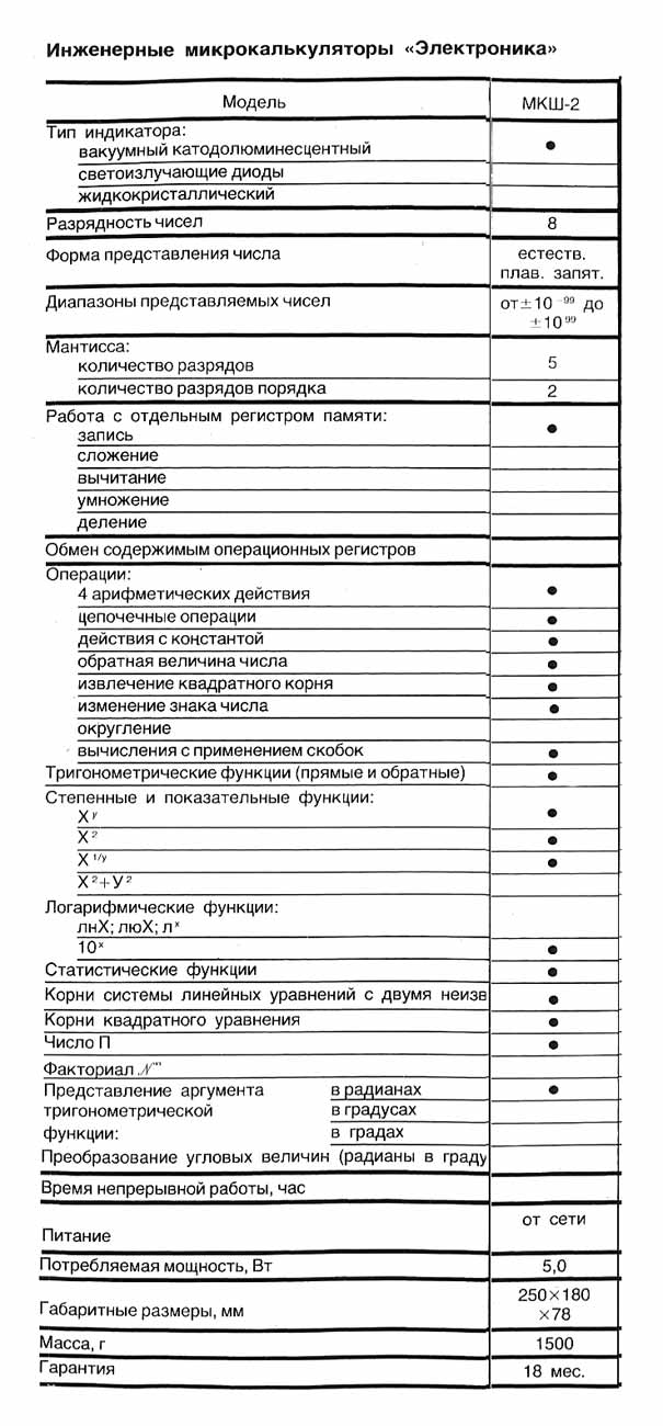 по эксплуатации микрокалькулятора "Электроника МКШ-2".