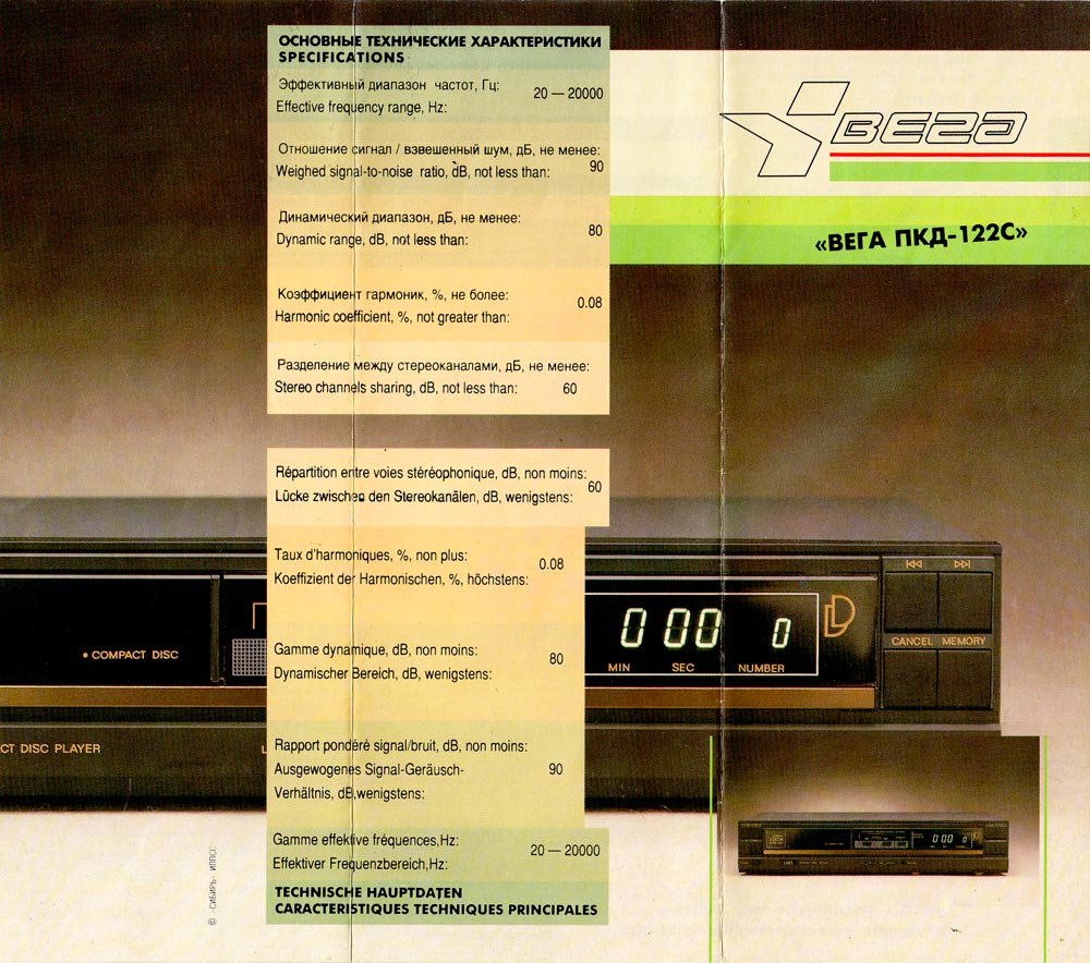 СССР и постсоветском пространстве модель CD-проигрывателя - "Вега ПКД 122".