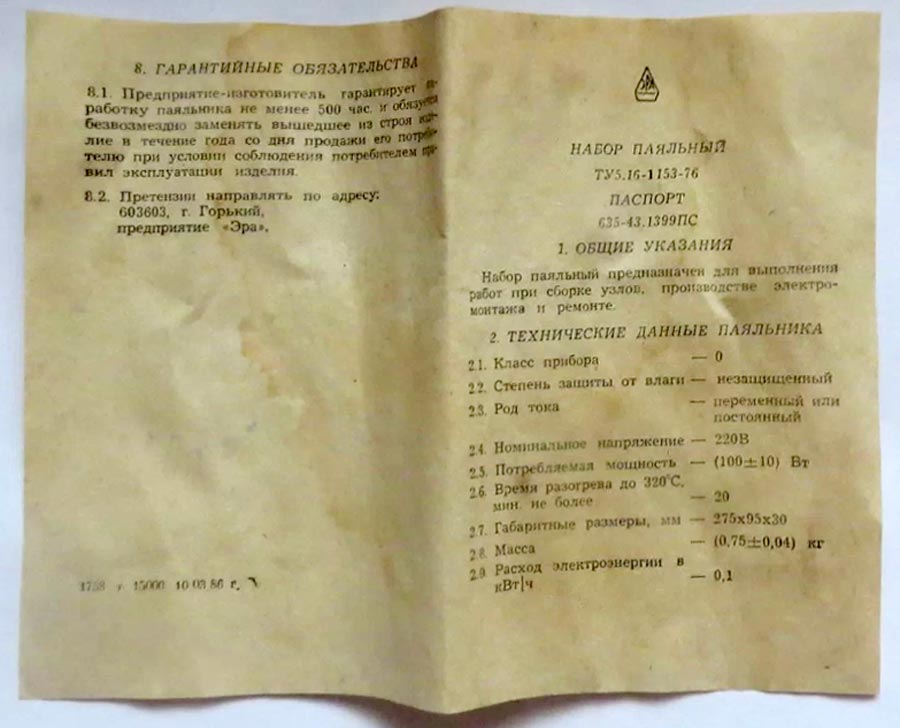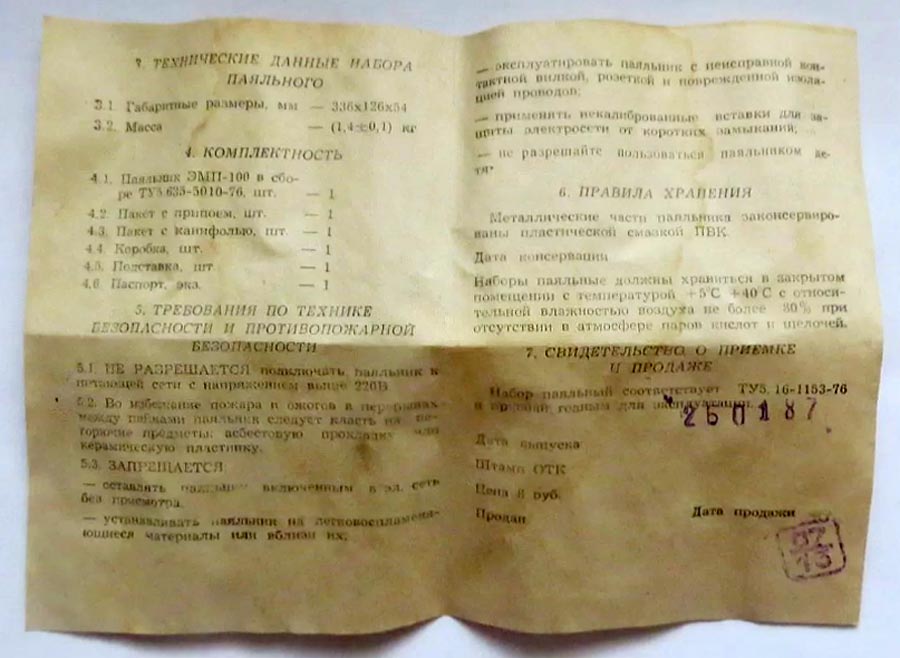 и пакет с припоем. Цена набора 8 рублей.