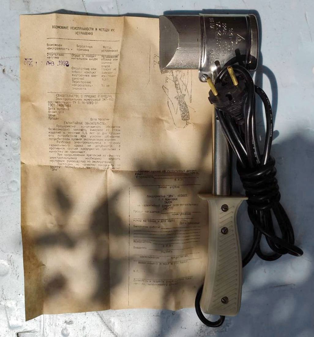 электропаяльник молотковый "ЭМП-100-220", подставка, а так же пакет с канифолью