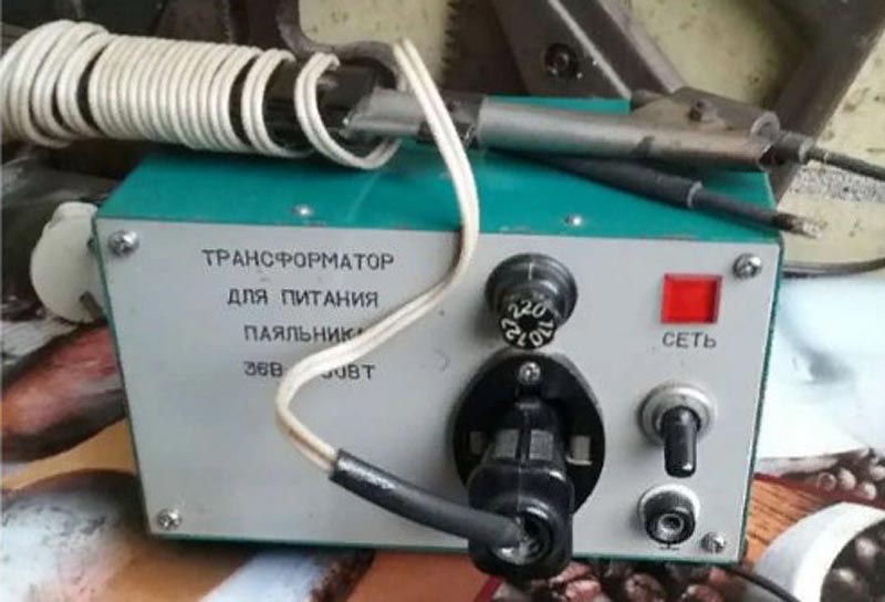 Рабочее напряжение 36 В. Электропаяльник выпускали на мощность 28 Вт и