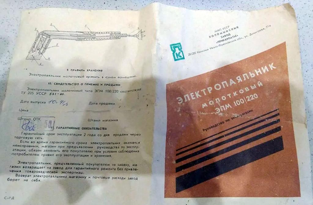 "Прикарпатье". Электропаяльник служит для выполнения паяльных работ при