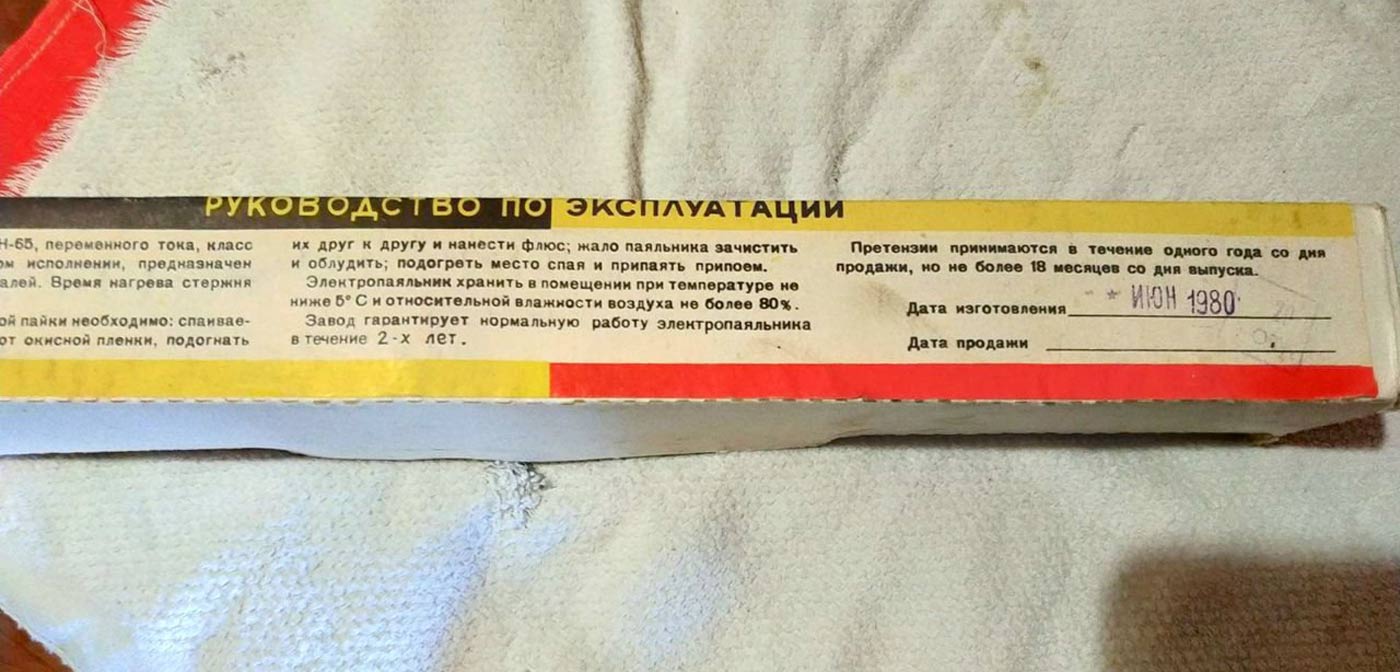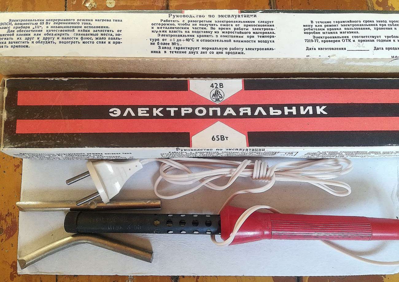 Вт. Номинальное напряжение 42 В. Комплектовался двумя медными паяльными