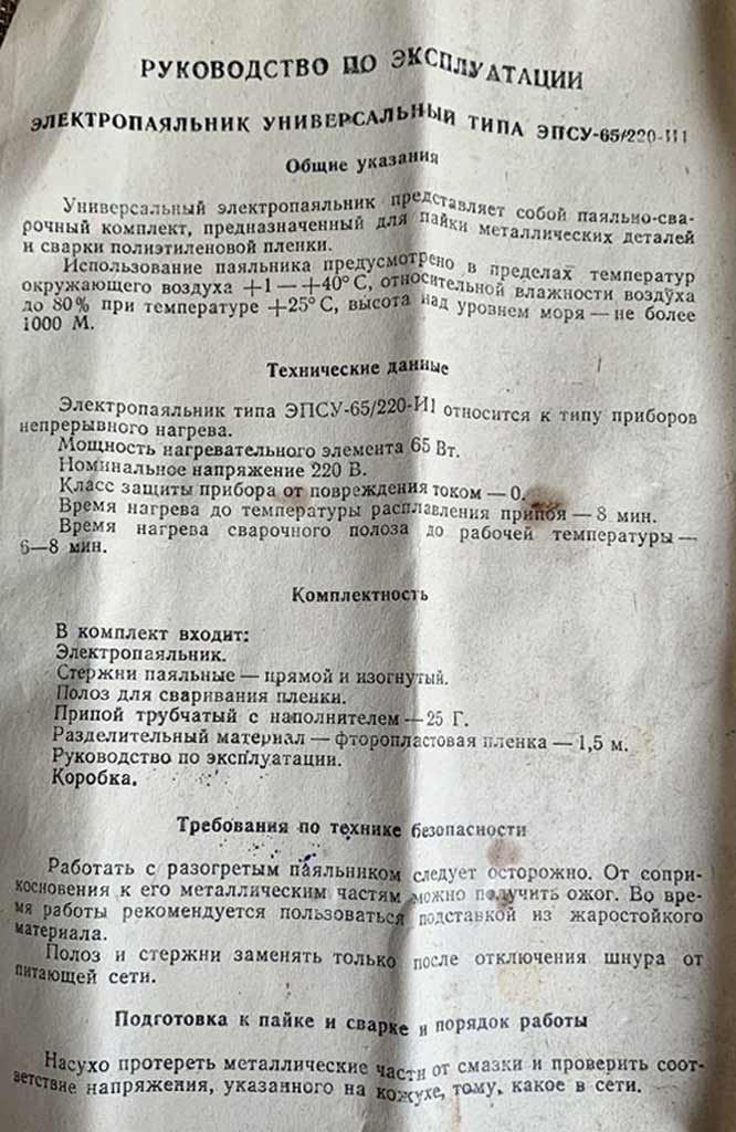 пленка 1,5 м. Цена электропаяльника 3 рубля 75 копеек.