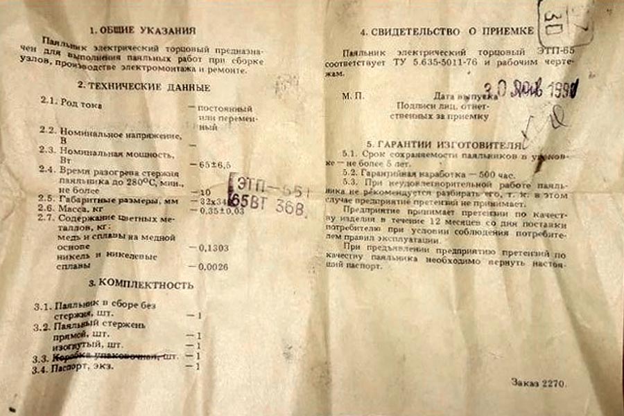 предприятием "ЭРА" в соответствии с ТУ 5.635-5011-76. Паяльник предназначен