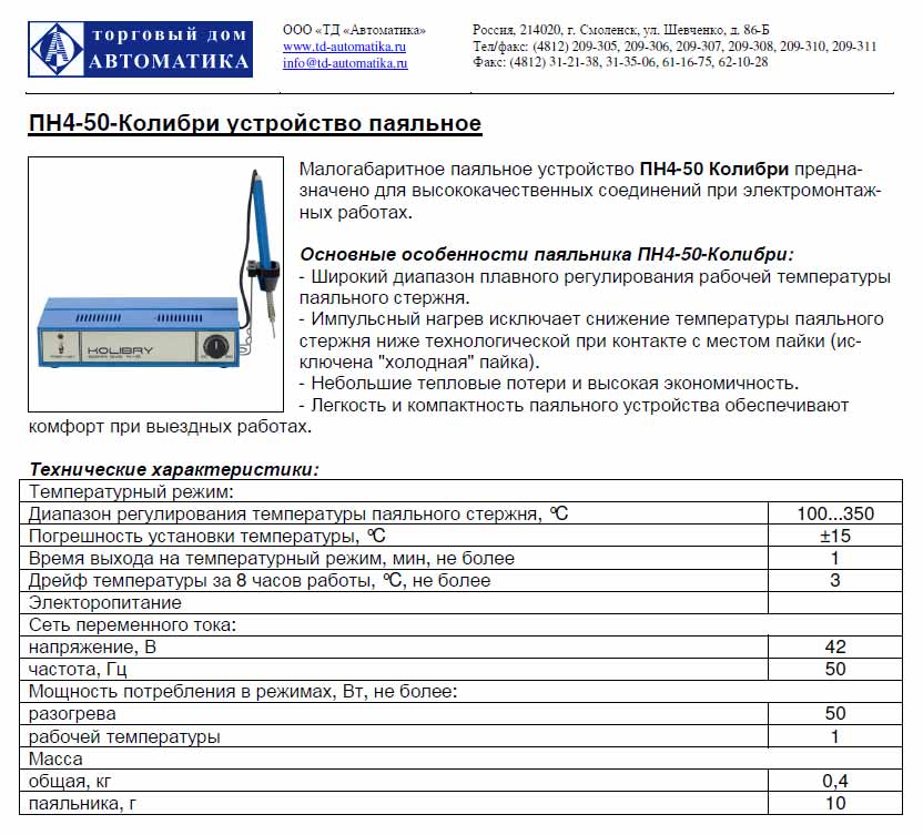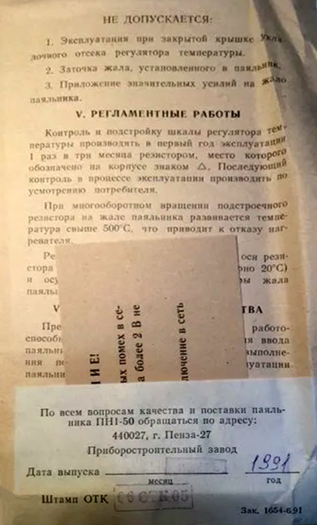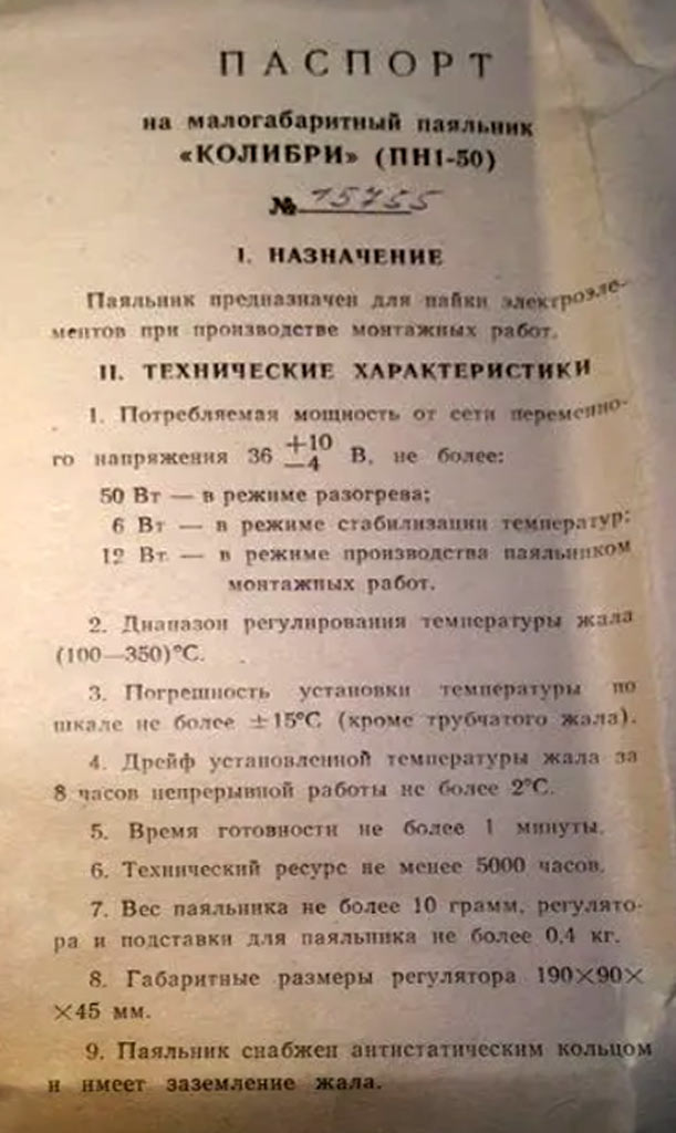 1991 года паяльник выпускался с наименованием "Колибри" (ПН4-50) и уже