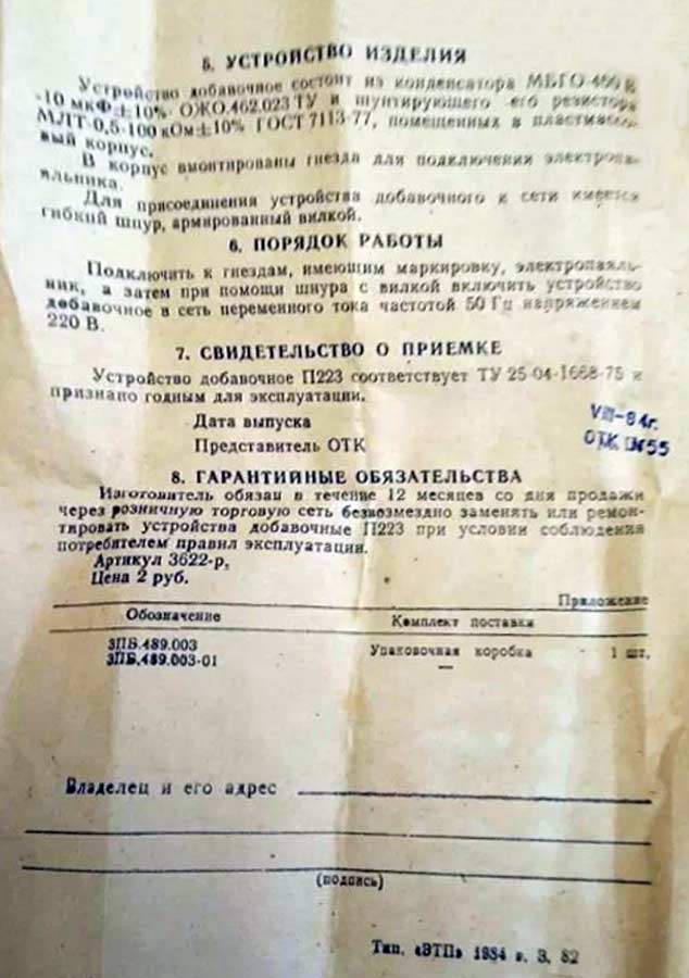 1 руб. 95 коп. Цена устройства добавочного 2 руб.