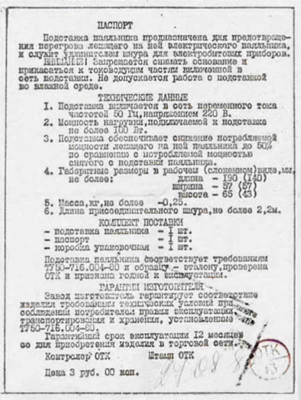 и припоя. Цена подставки для паяльника 3 рубля 00 коп.