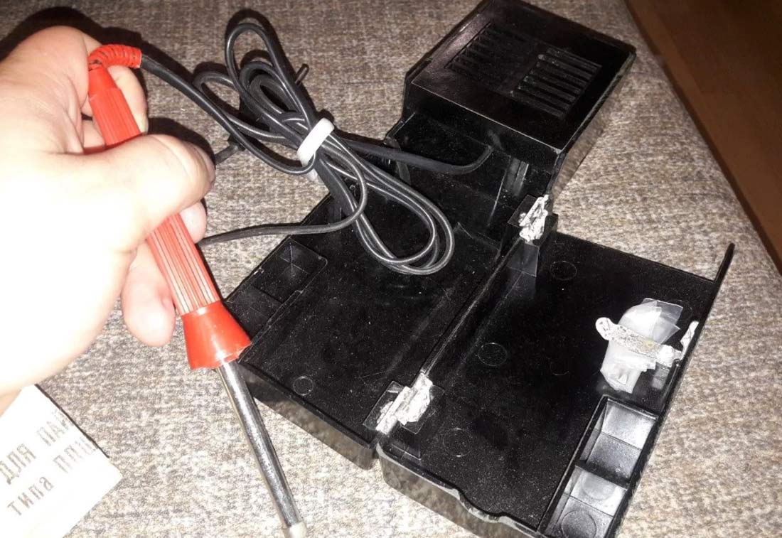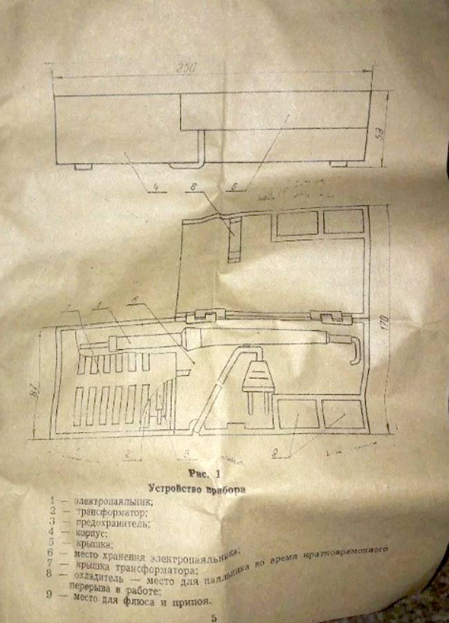 220 В частотой 50 Гц. В корпусе прибора также имеется место для флюса и