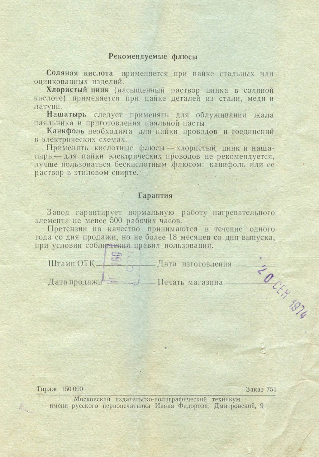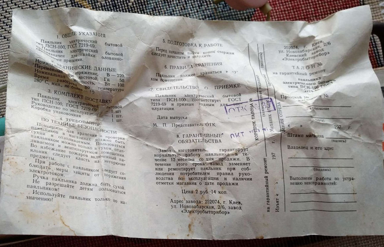 изготавливался на рабочие напряжения 36, 127 или 220 В. Паяльник выпускался
