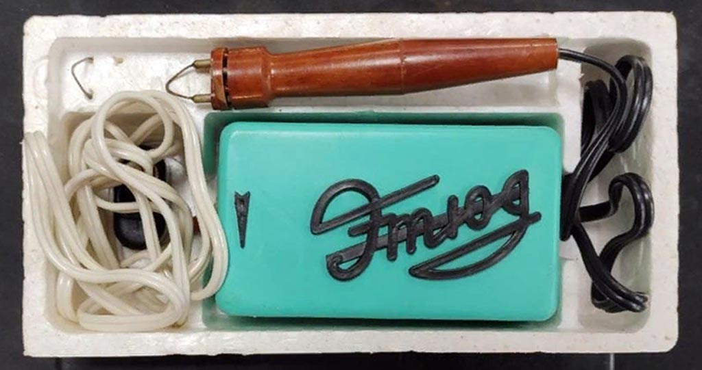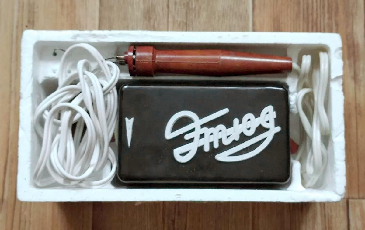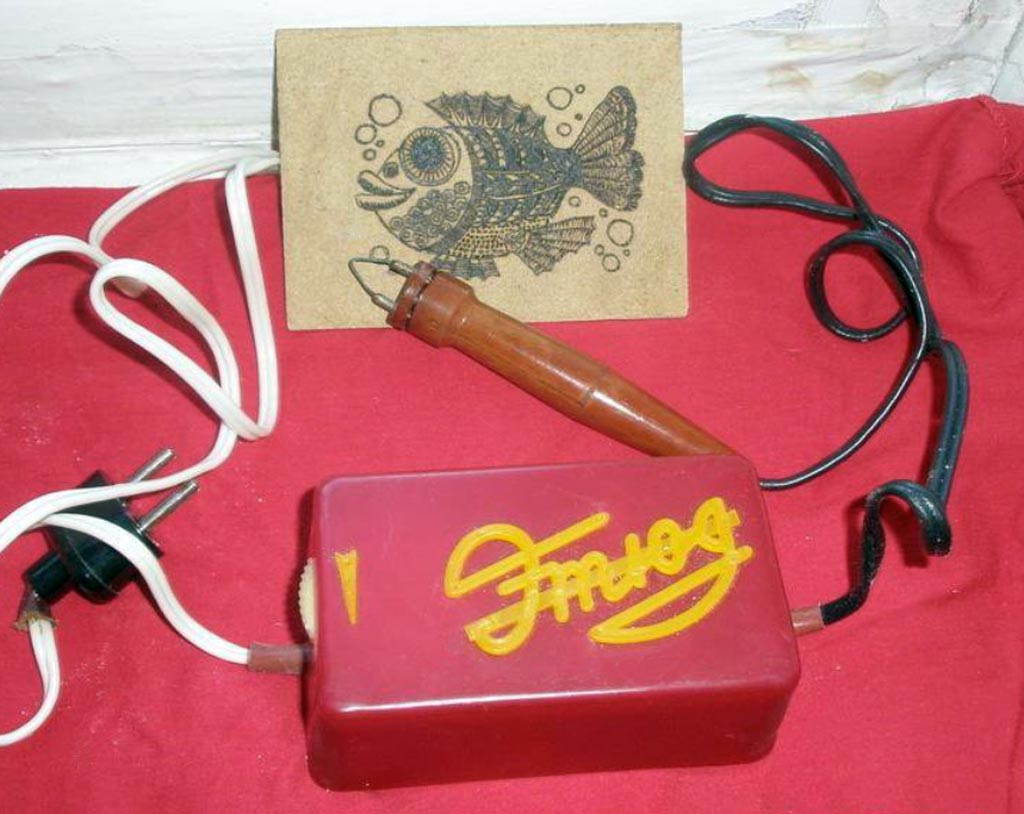 Игрушка электровыжигатель по дереву "Этюд" выпускался возможно с 1985 года. Игрушка электровыжигатель по дереву "Этюд" предназначена для выжигания рисунков на деревянной поверхности школьниками.