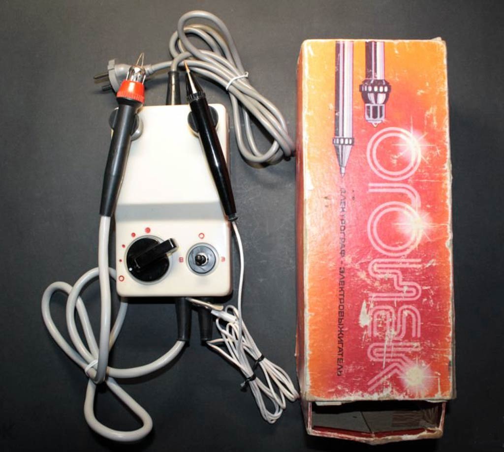Электрограф и электровыжигатель "Огонёк" выпускался предположительно с 1981 года. Электрограф и электровыжигатель "Огонёк" предназначен для гравирования по металлу и выжигания по гладкому дереву.