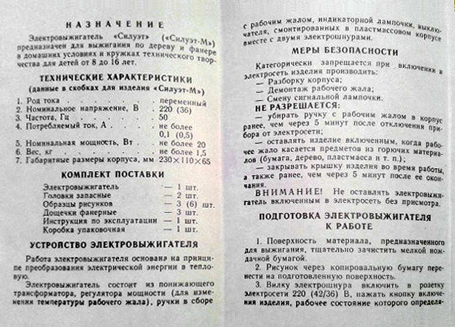 служат для технического творчества детей возрастом от 8 до 16 лет. Электровыжигатель"Силуэт"