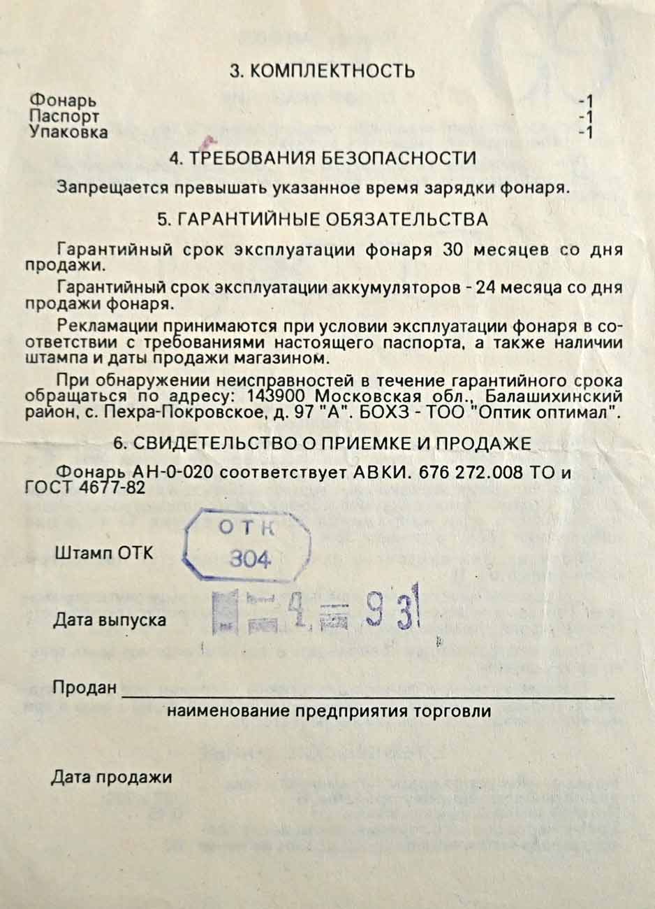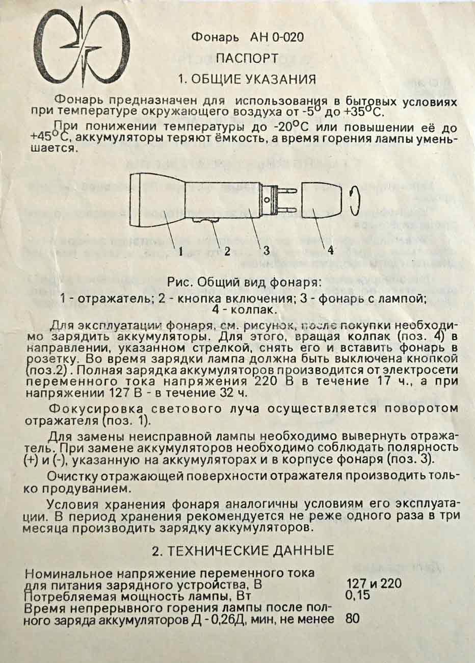 Фонарь "АН 0-020" выпускался предположительно