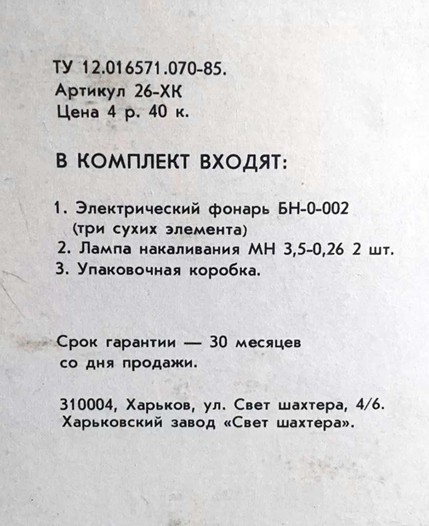 Фонарь "БН-0-002" выпускался возможно с 1987 года Харьковским заводом "Свет шахтёра". Питание от трёх элементов типа "343". Лампочка МН 3,5 вольта, 0,26 ампера.