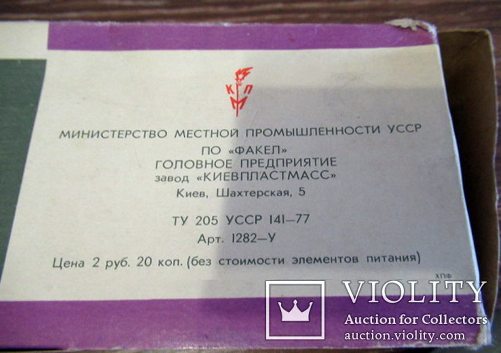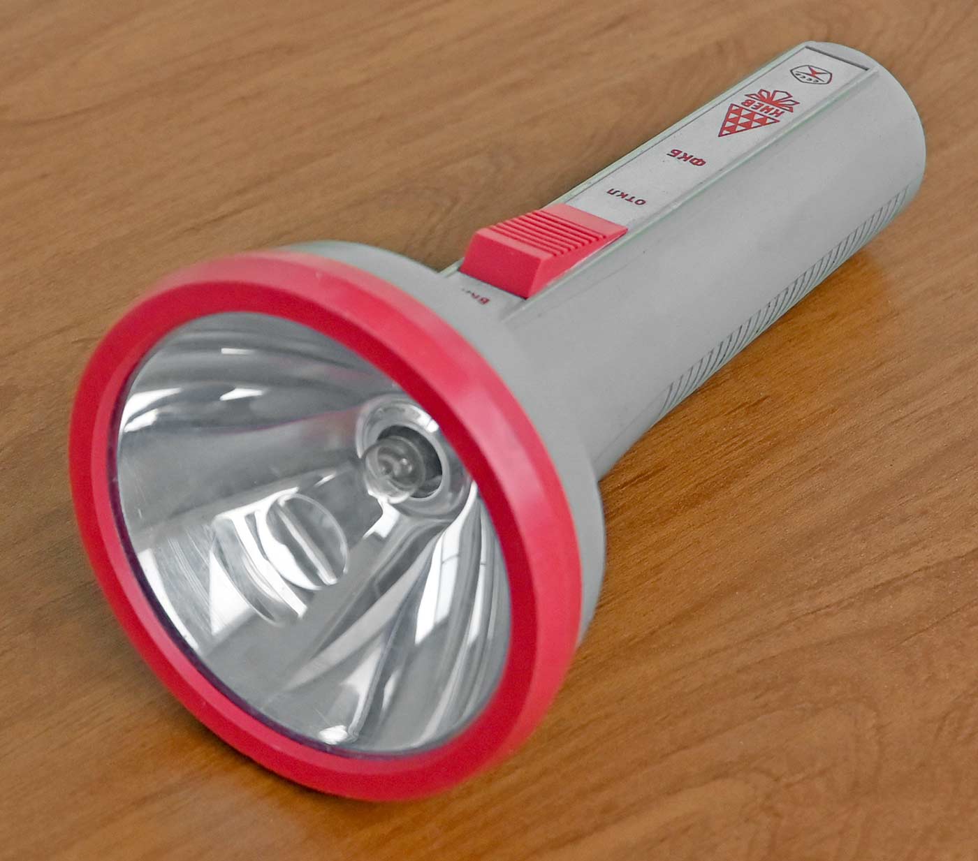 Фонарь карманный батарейный "ФКБ" выпускался возможно с 1982 года Киевским заводом "Киевпластмасс". Питание 2 элемента 373. Лампочка 2,5 В х 0,15 А.
