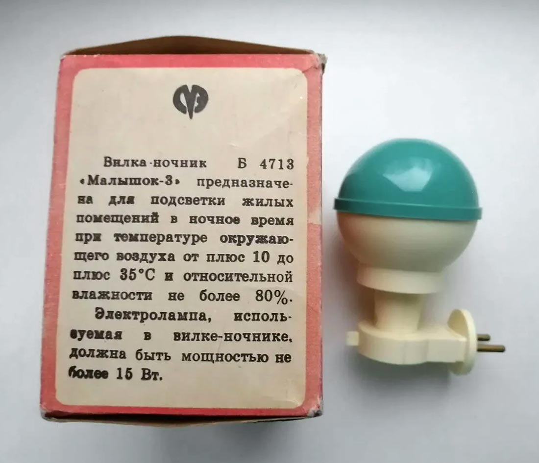 Вилка-ночник "Малышок-3" (ночник) выпускался предположительно с 1969 года. Предназначен для подсветки комнаты в ночное время для ориентирования. Сеть 220 В, 15 Вт.