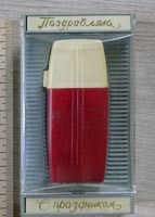Сувенирный фонарь "Поздравляю с праздником" выпускался предположительно с 1978 года Краснодарским заводом измерительныъх приборов. Питание - 2 батареи типа "316". Лампа накаливания 2,5 В, 0,15 А.