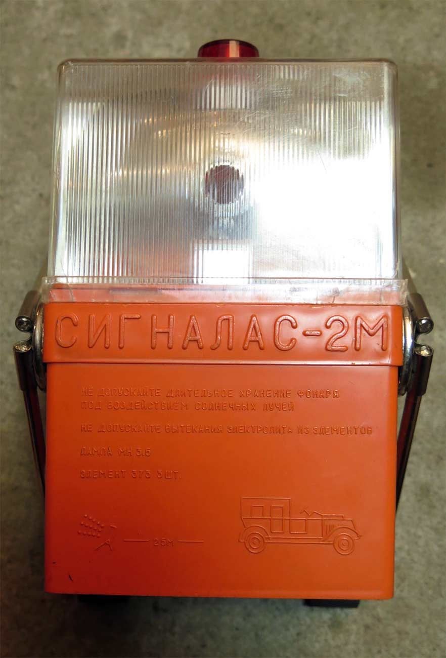 Сигнальный импульсный фонарь "Сигнал-2М" с 1981 года выпускал Паневежский завод точной механики (Сигма). Фотографии фонаря с сайта https://www.drive2.ru/.