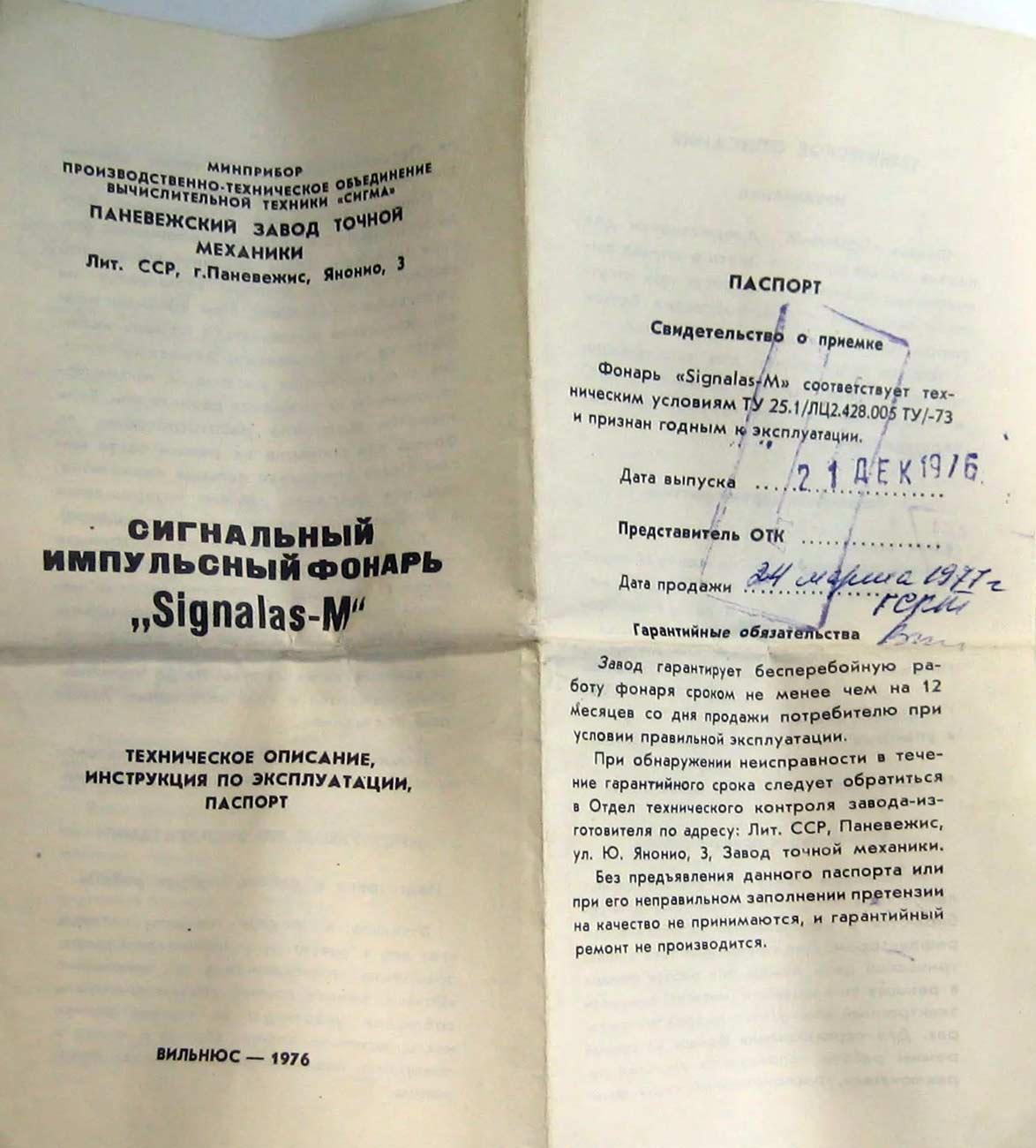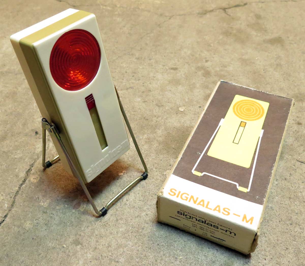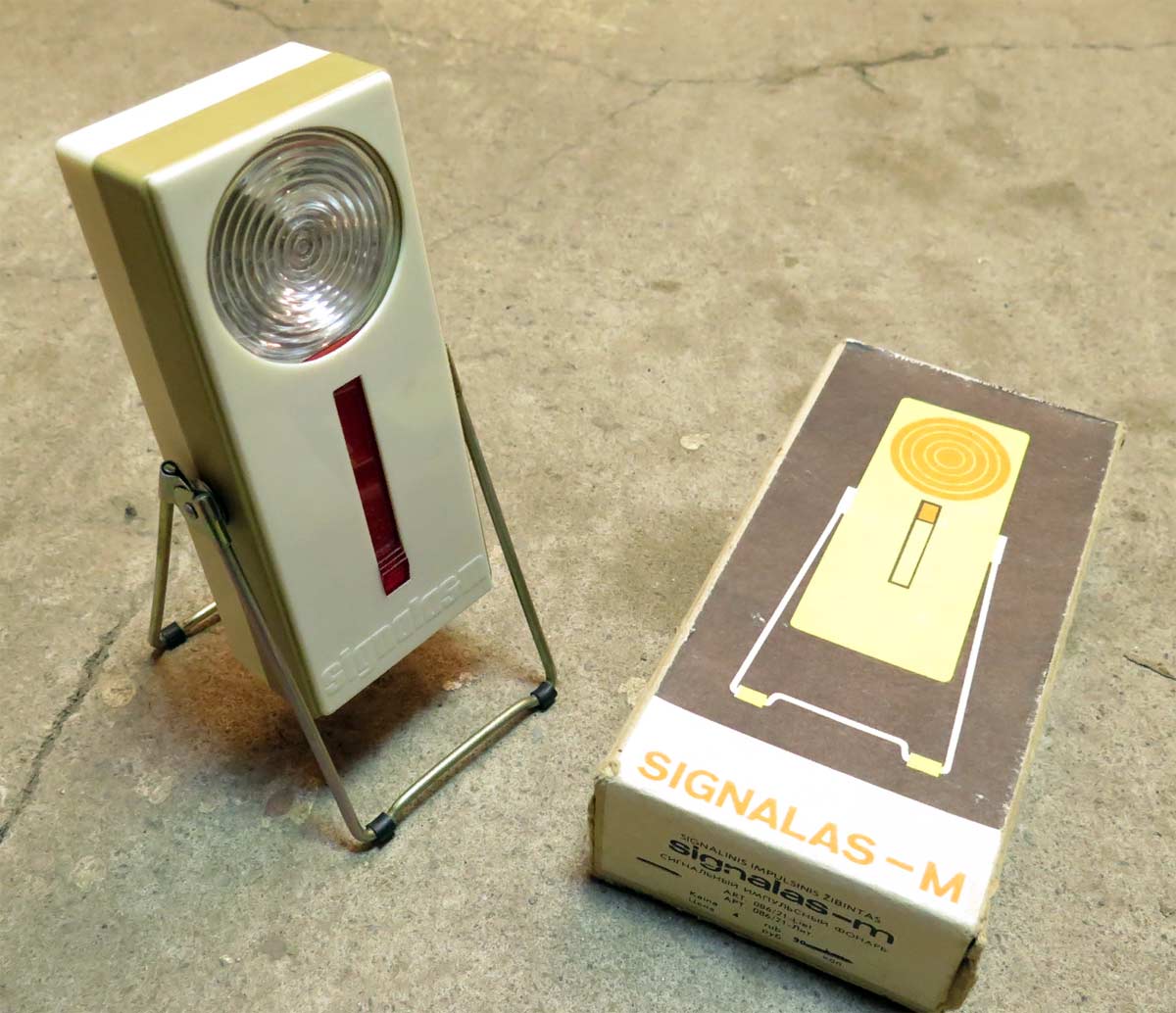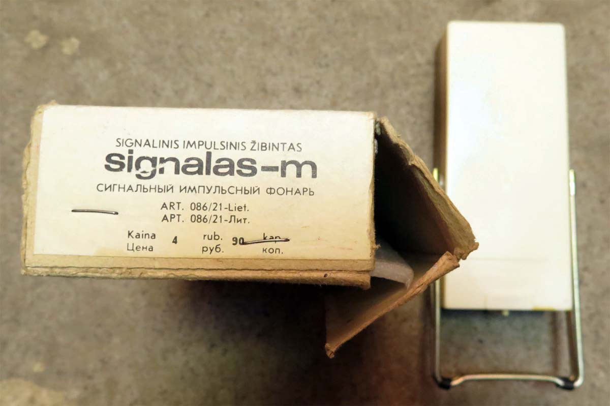 Сигнальный импульсный фонарь "Сигнал-М" с 1976 года выпускал Паневежский завод точной механики. Фотографии фонаря с сайта https://www.drive2.ru/.