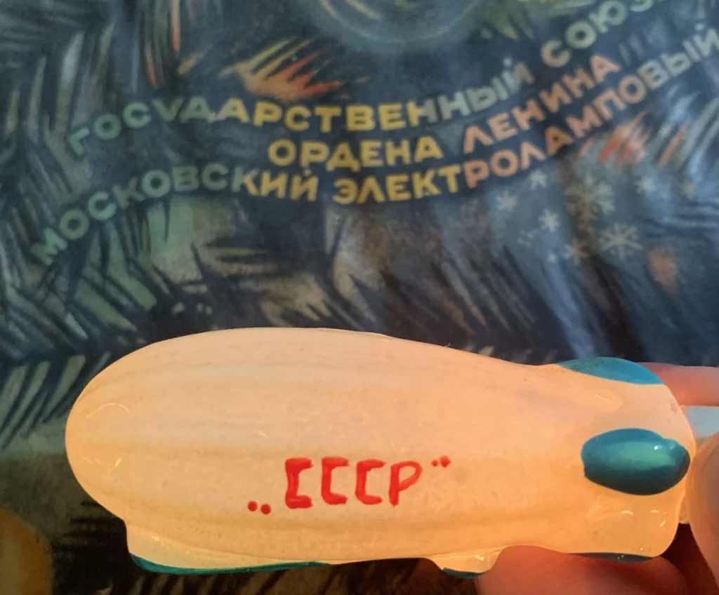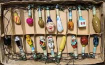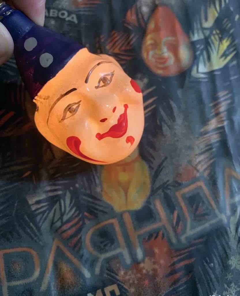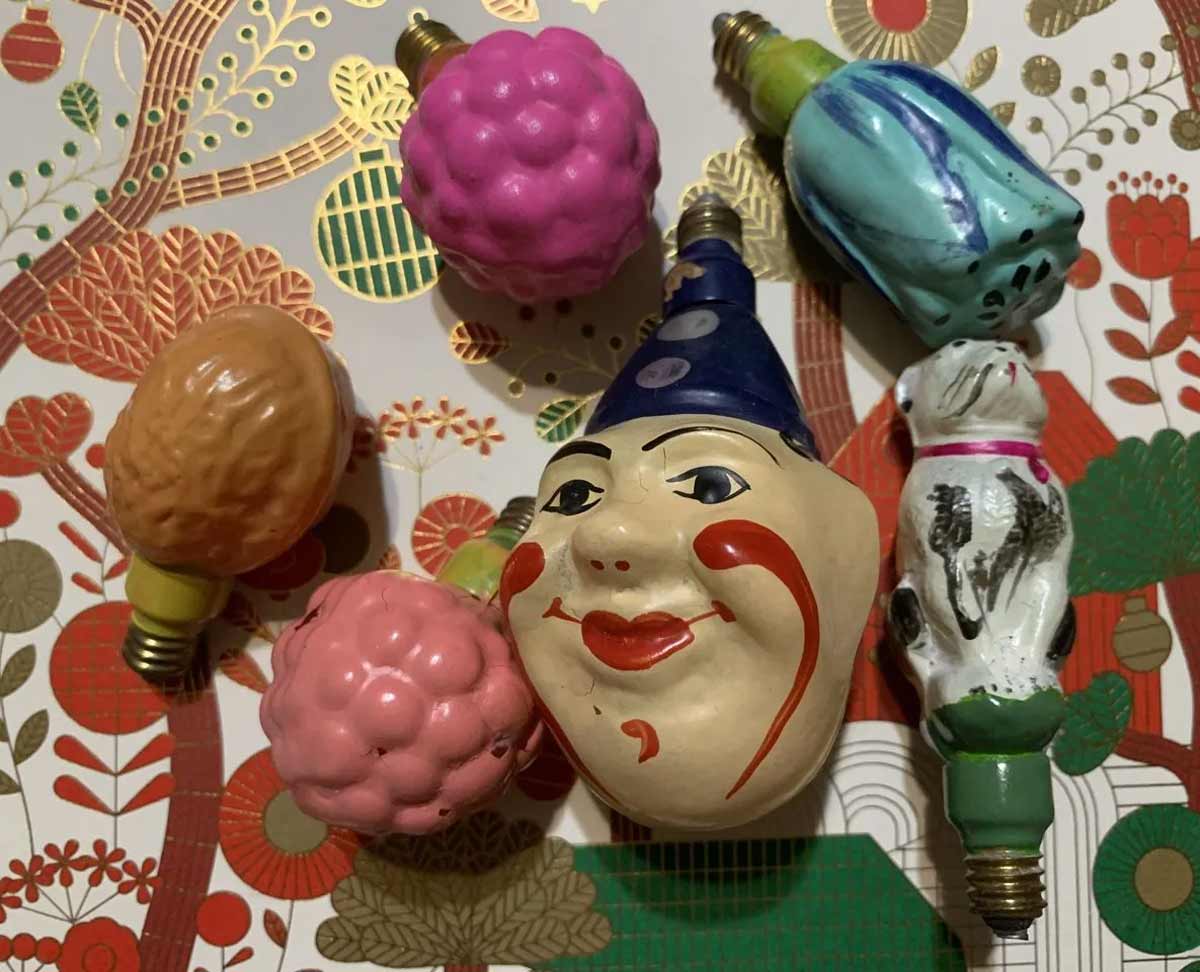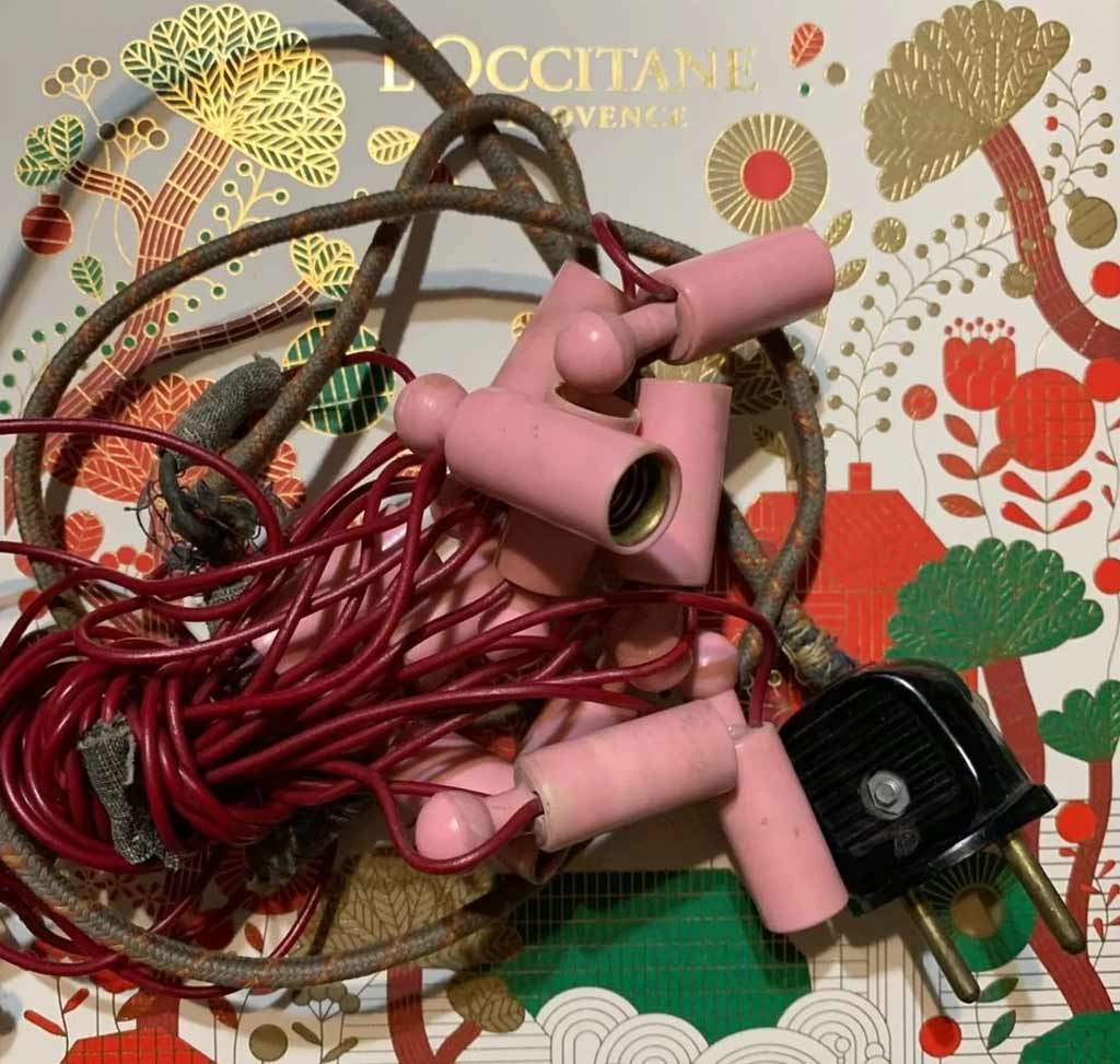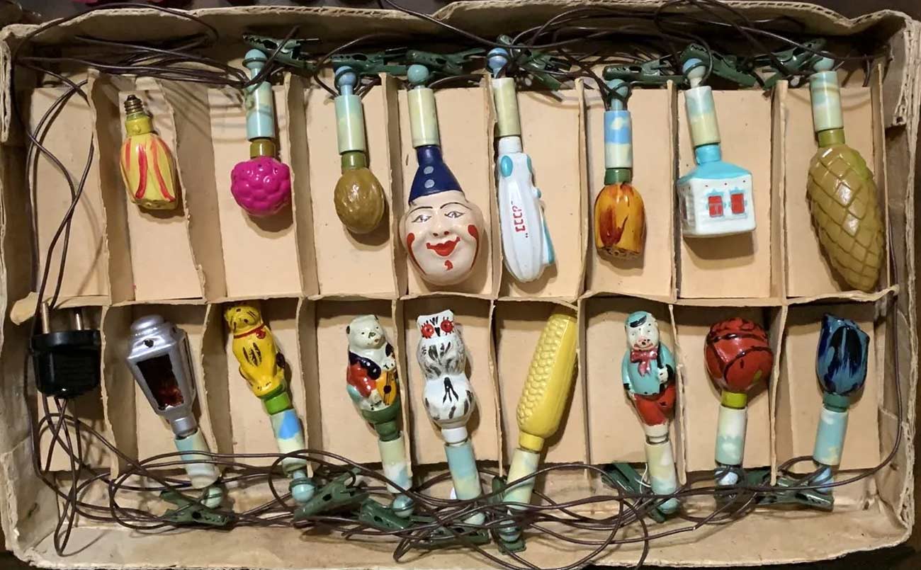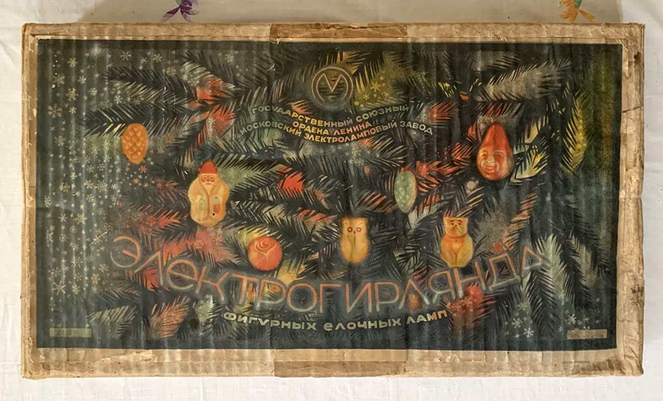 Электрогирлянда фигурных ёлочных ламп выпускалась возможно с 1959 года Московским электроламповым заводом. 16 ламп, напряжение 220 В.