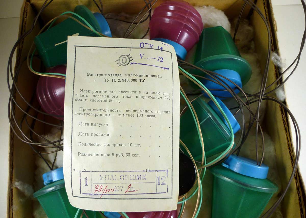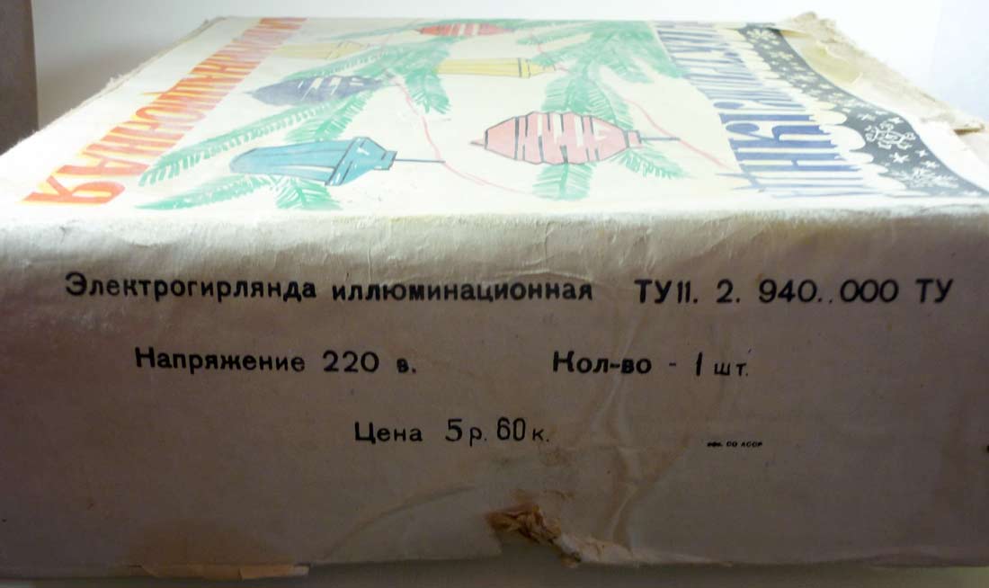 Электрогирлянда иллюминационная "ЭИ" выпускалась предположительно с 1971 года. Питание от сети 220 В. Десять неоновых лампочек в двух типах фонариков.