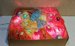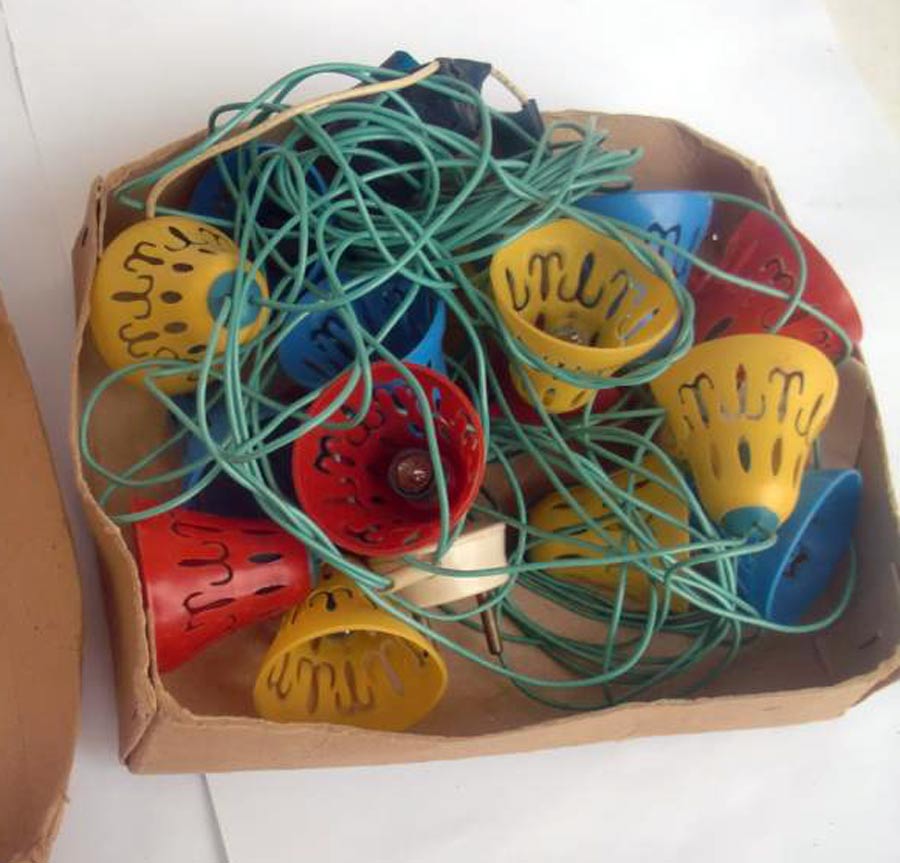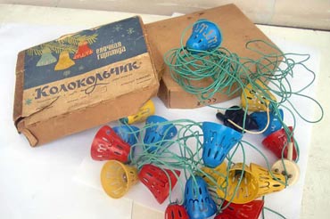Ёлочная гирлянда "Колокольчик" выпускалась предположительно с 1978 года неустановленным предприятием. Лампы 13,5 В х 20 штук. Сеть - 220 В.