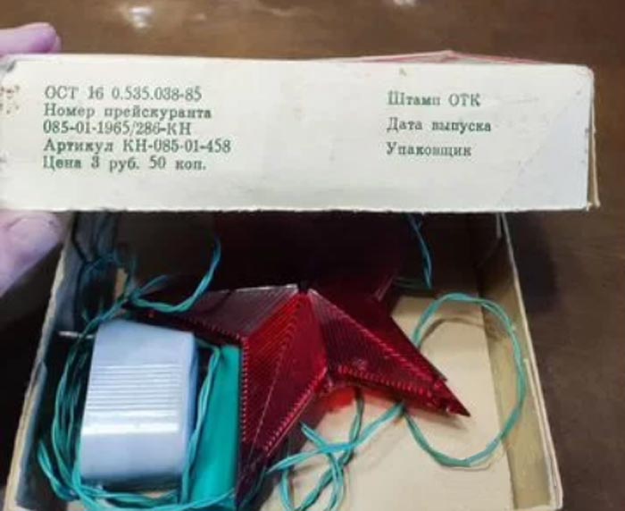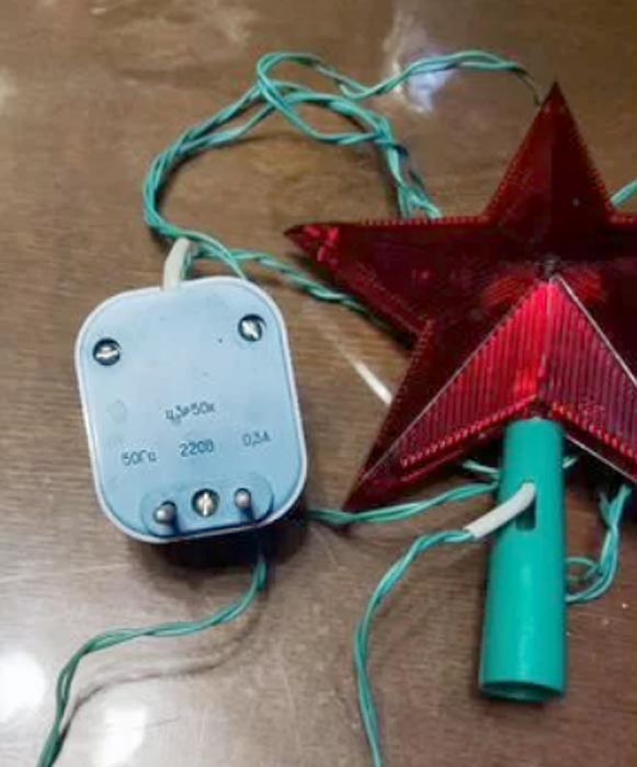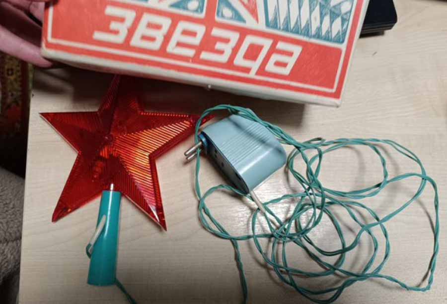 Наконечник электрический ёлочный "Звезда" выпускался предположительно с 1986 года Казанским заводом "ЭВМ". Напряжение питания 220 В. Цена 3 руб. 50 коп.