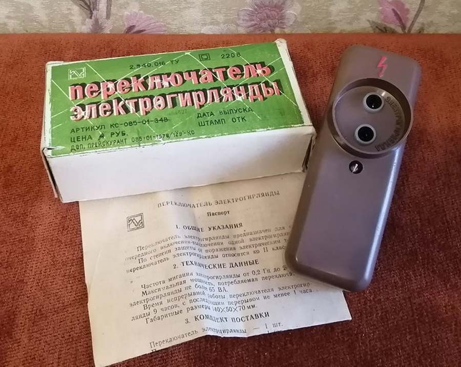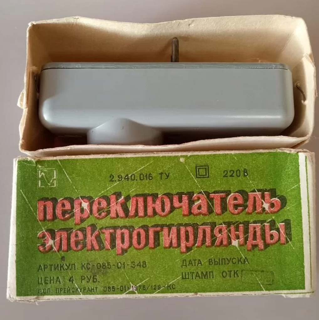 Переключатель электрогирлянды выпускался предположительно с 1979 года Курским заводом "Маяк". Предназначен для включения и выключения одной гирлянды с частотой 0,2...20 Гц.