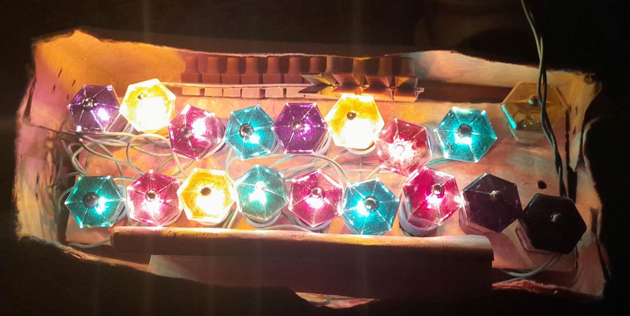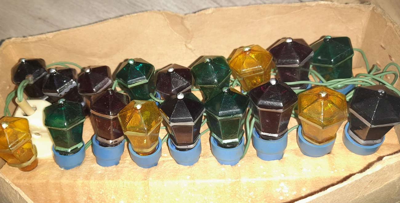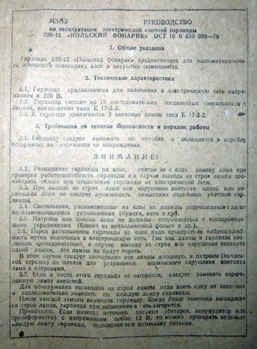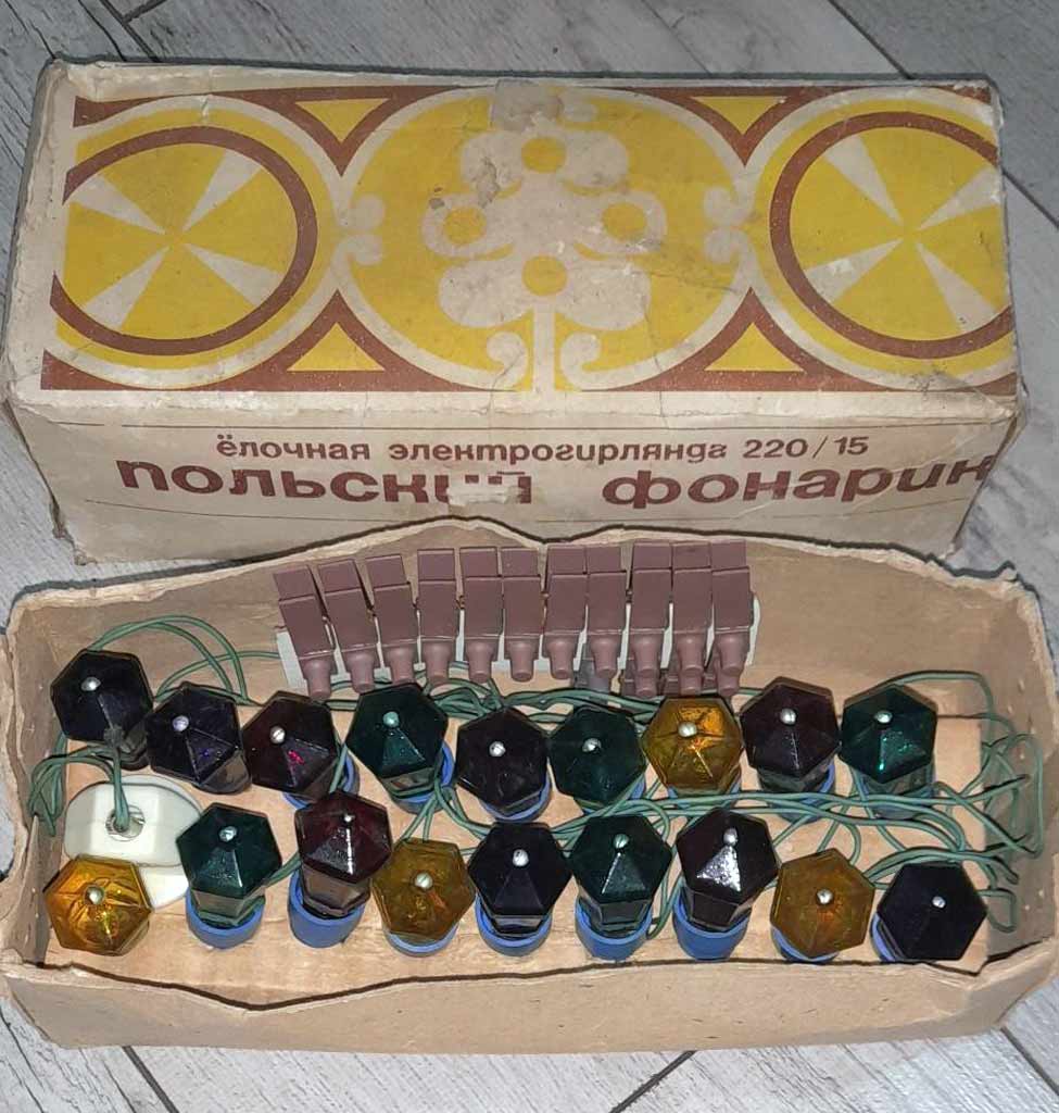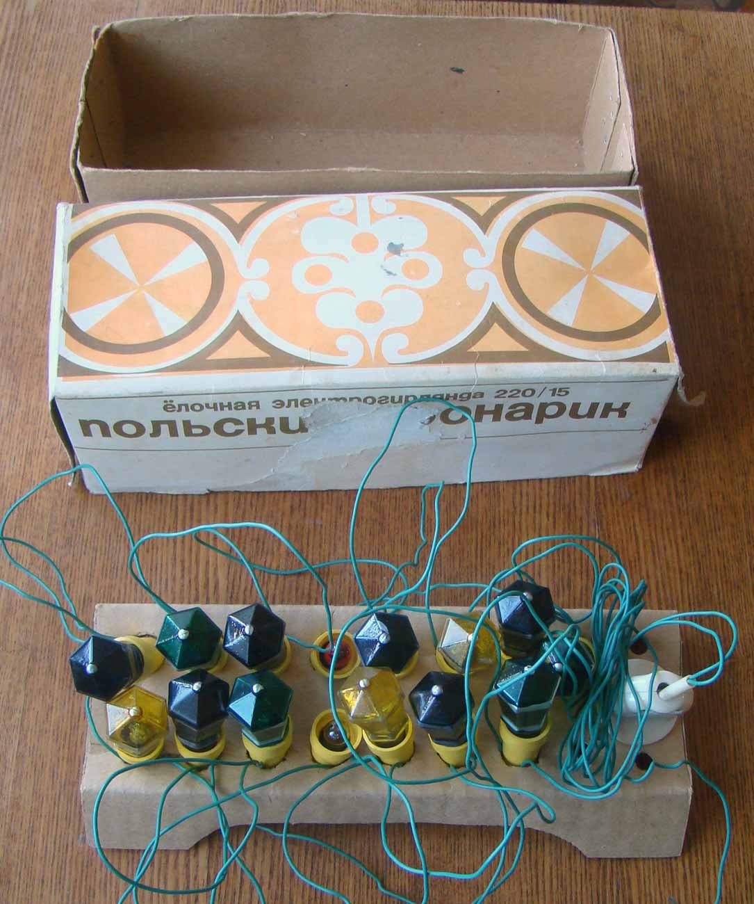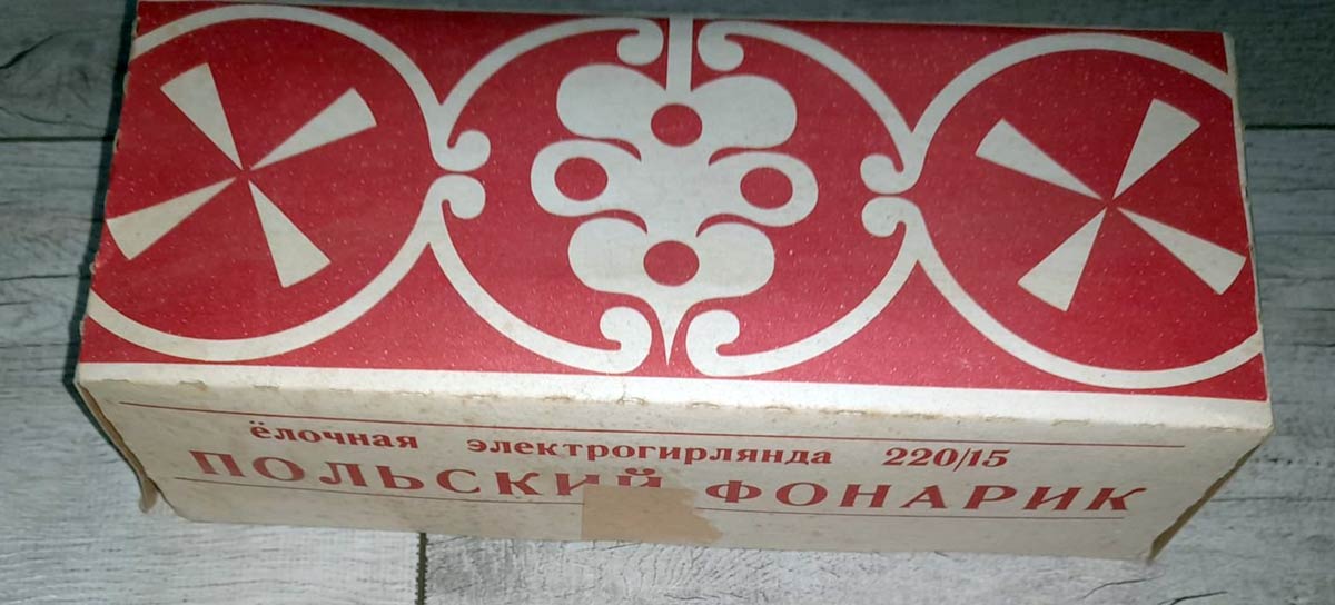 Электрическая ёлочная гирлянда "Польский фонарик" (220-15) выпускалась предположительно с 1983 года на Московском электроламповом заводе (МЭЛЗ).