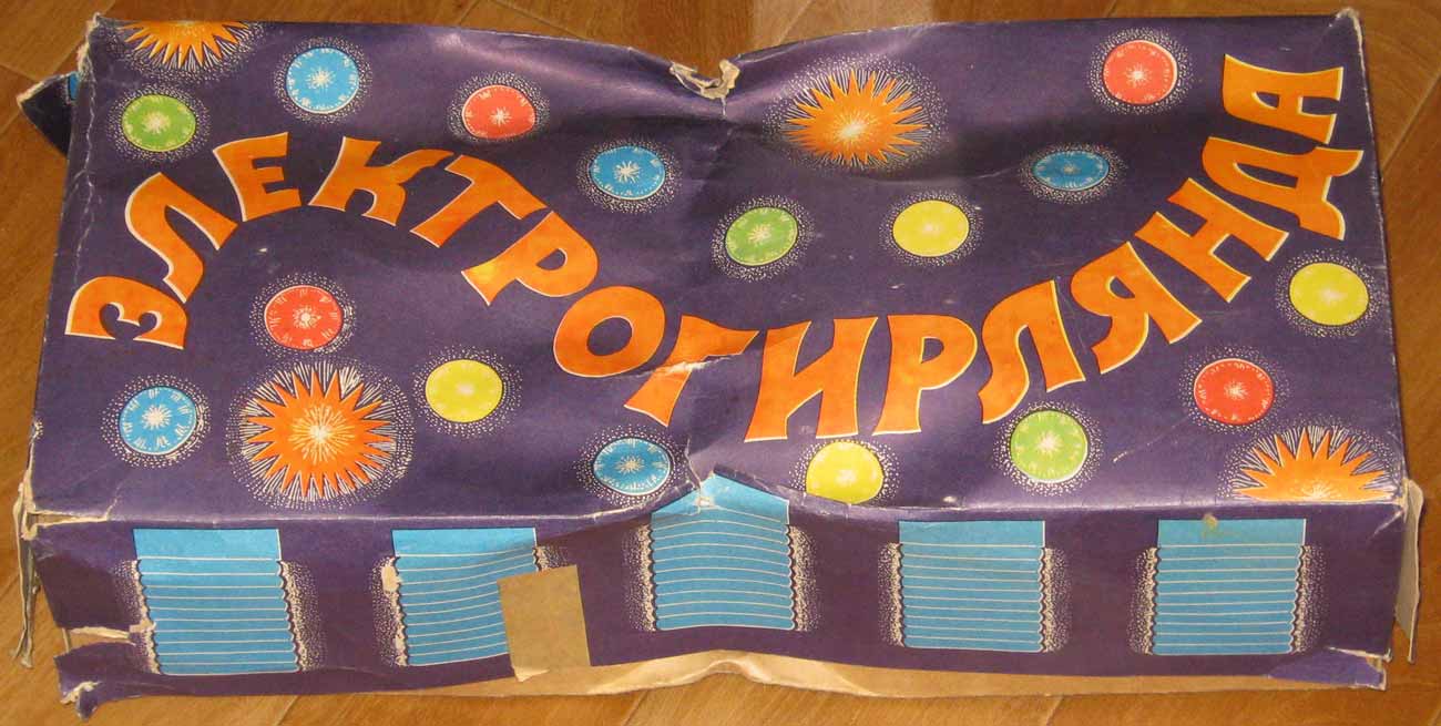 Гирлянда электрическая ёлочная "Уют" выпускалась возможно с 1991 года МПЭК. 220 вольт. 10 ламп МН26-0,12. 4 цвета. Фотографии гирлянды для сайта предоставил Владимир Чащихин, город Пермь.