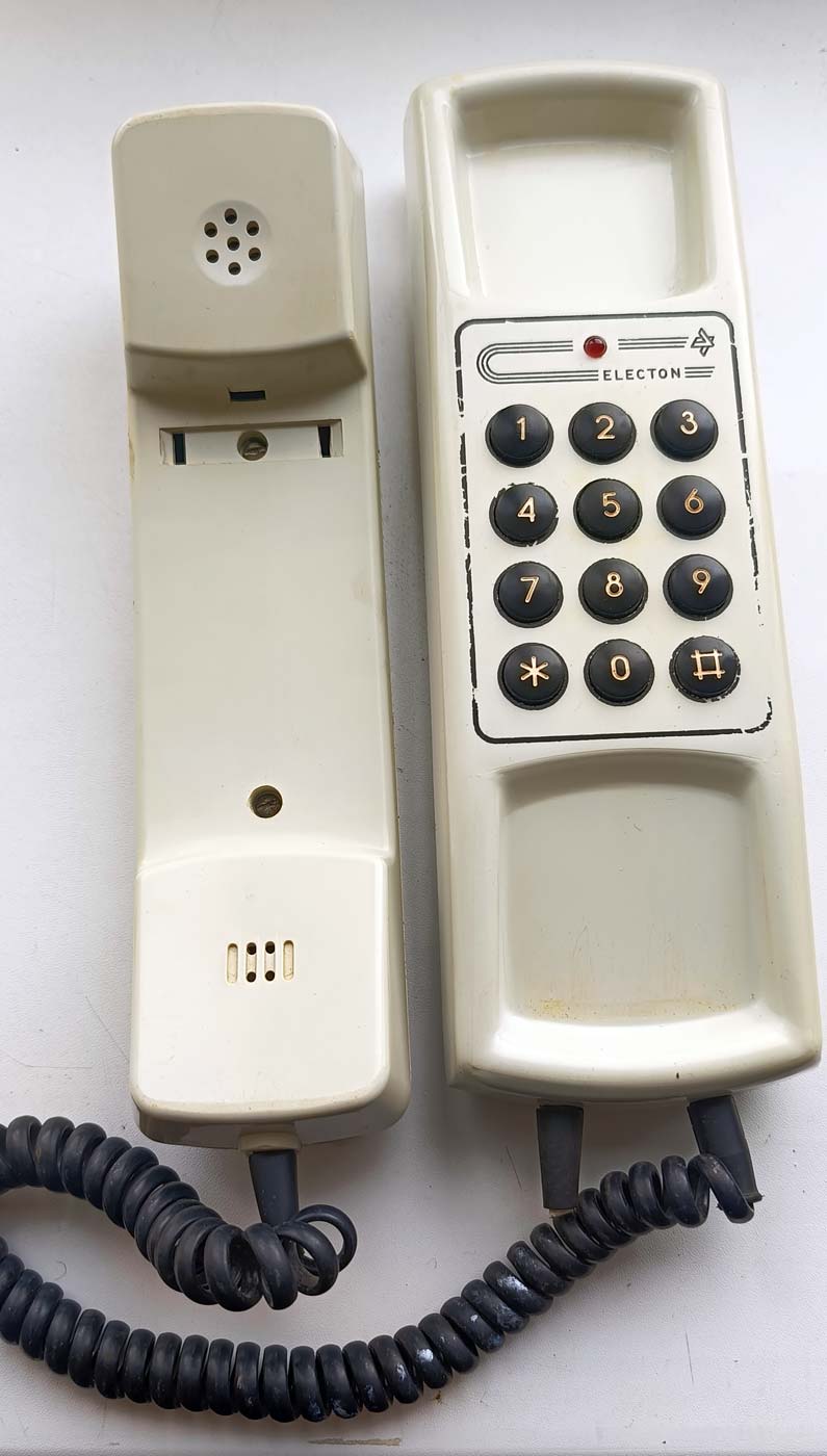 Телефонный аппарат "Electon-201" производился возможно с 1993 года в республике Крым. Настольно-настенный ТА для работы в сетях АТС. Фото Ильи Ковалёва, Симферополь.