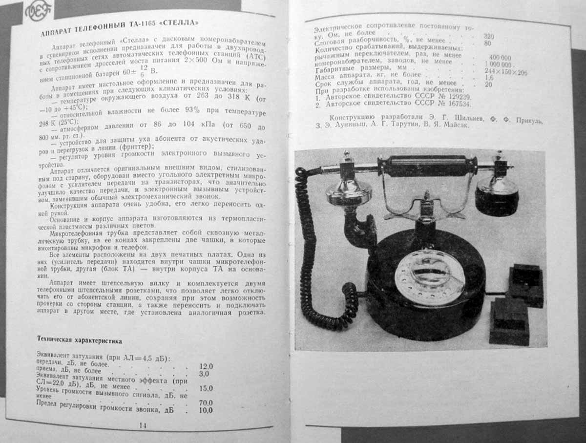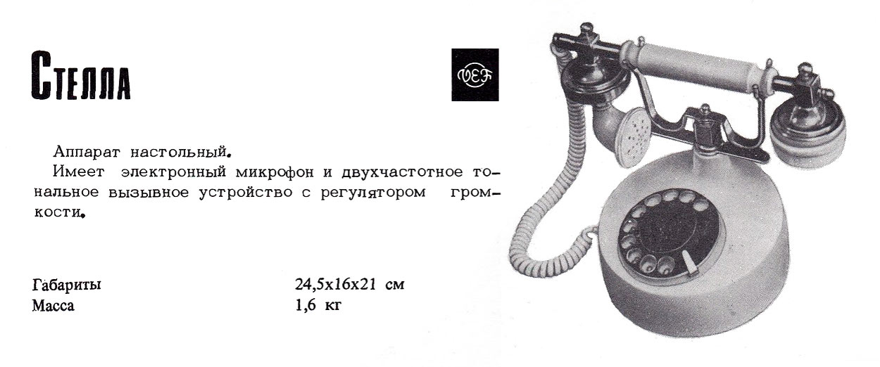 Аппарат телефонный ТА-1165 "Стелла" в сувенирном исполнении выпускался возможно с 1986 года Рижским ПО "ВЭФ". ТА работает в двухпроводных телефонных сетях автоматических телефонных станций.