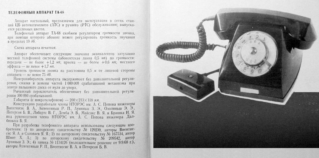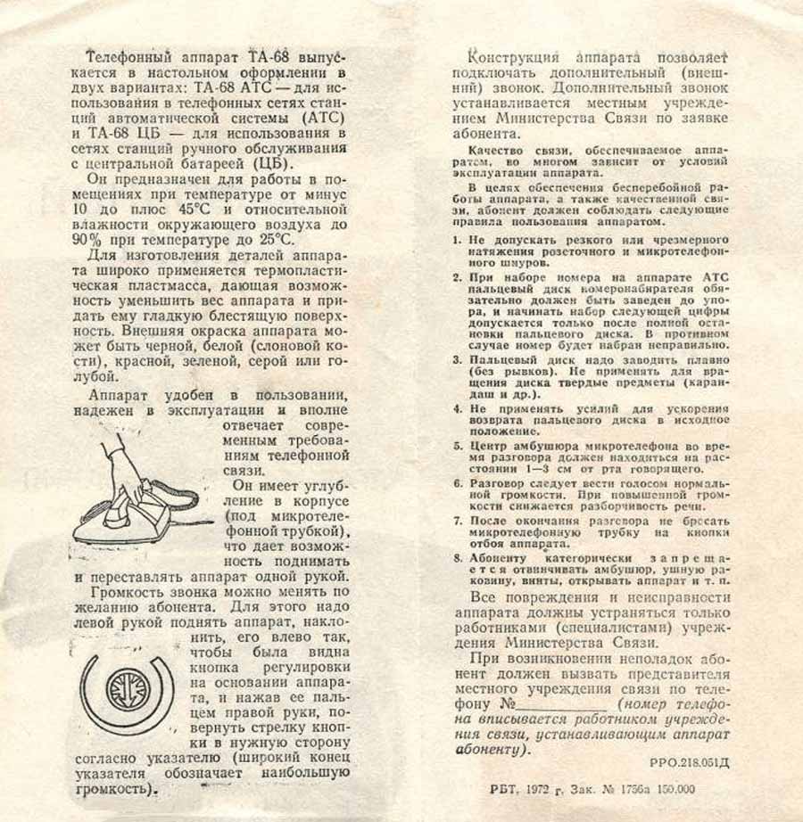 телефонный аппарат "ТА-68" предназначен для эксплуатации в сетях станций