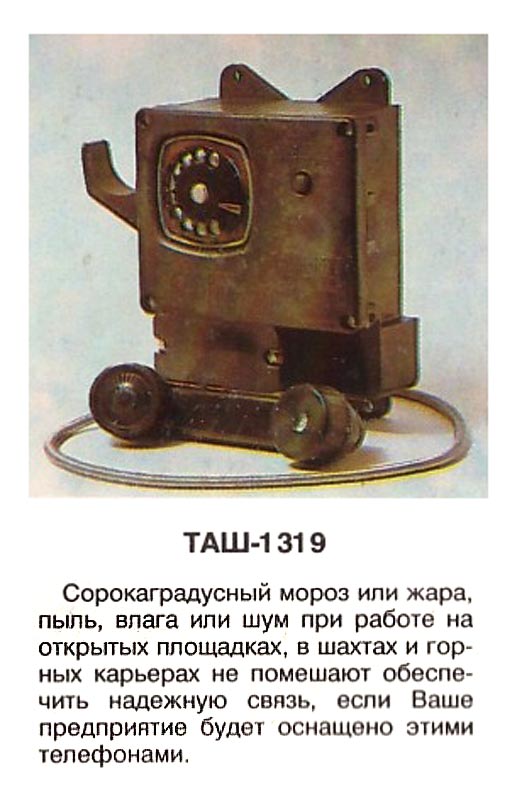 Телефонный аппарат "ТАШ-1319" выпускался возможно с 1990 года Пермским телефонным заводом. Предназначен для использования в тяжёлых климатических условиях. Фото с сайта https://www.sovtech.su/.