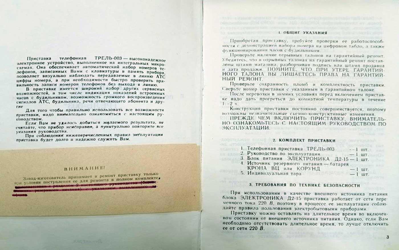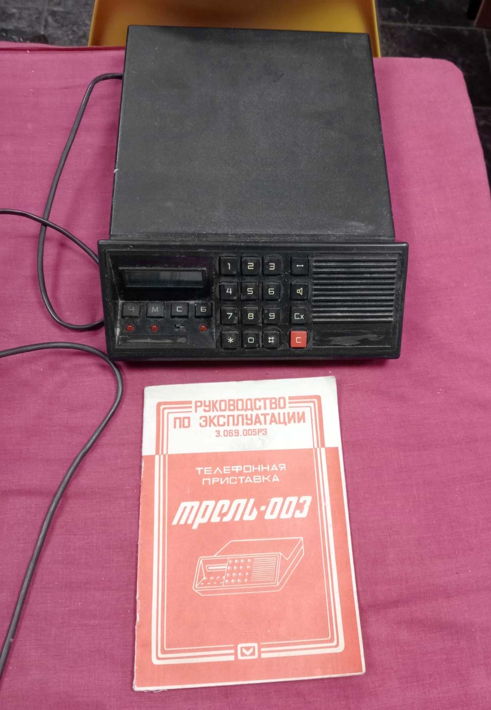 Телефонная приставка "Трель-003" выпускалась с 1986 года а Ленинграде. Приставка предназначена для автоматического набора номеров записанных в память.