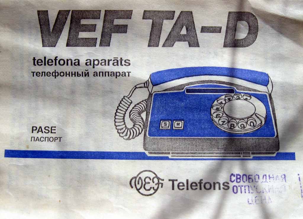 Телефонный аппарат VEF "ТА-D" выпускался возможно с 1989 года Рижским изготовителем "ВЭФ-Телефон". Телефонный аппарат с номеронабирателем предназначен для эксплуатации в сетях АТС и АТС-КЭ.