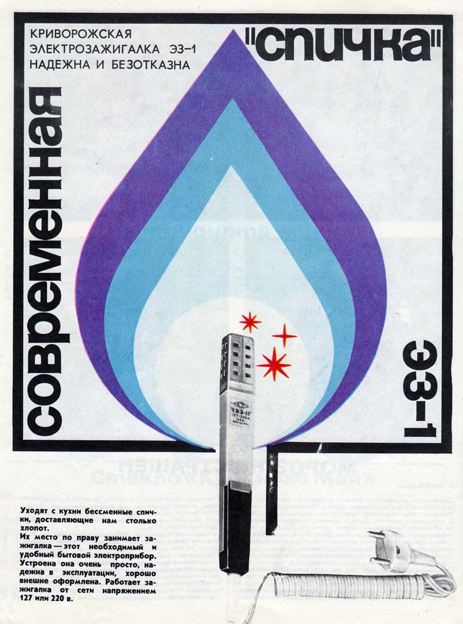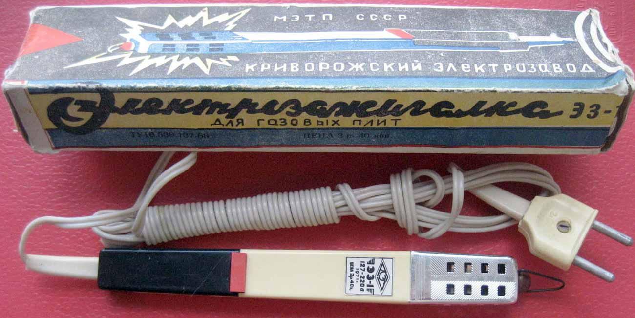 Электрозажигалка для газовых плит "ЭЗ-1" выпускалась возможно с 1969 года Криворожским электрозаводом и ещё одним неустановленным предприятием. Видеосюжет.