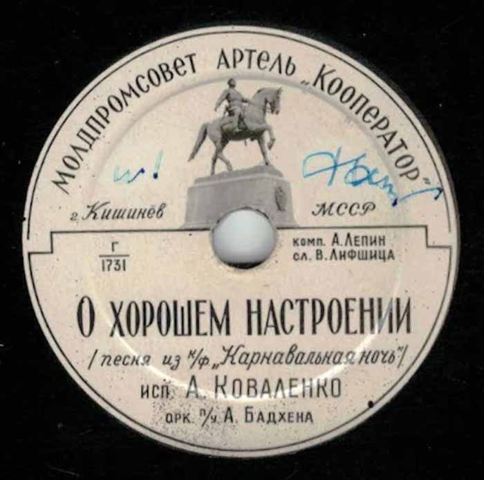 года артелью «Кооператор» Молдпромсовета, гор. Кишинев. Размер грампластинки