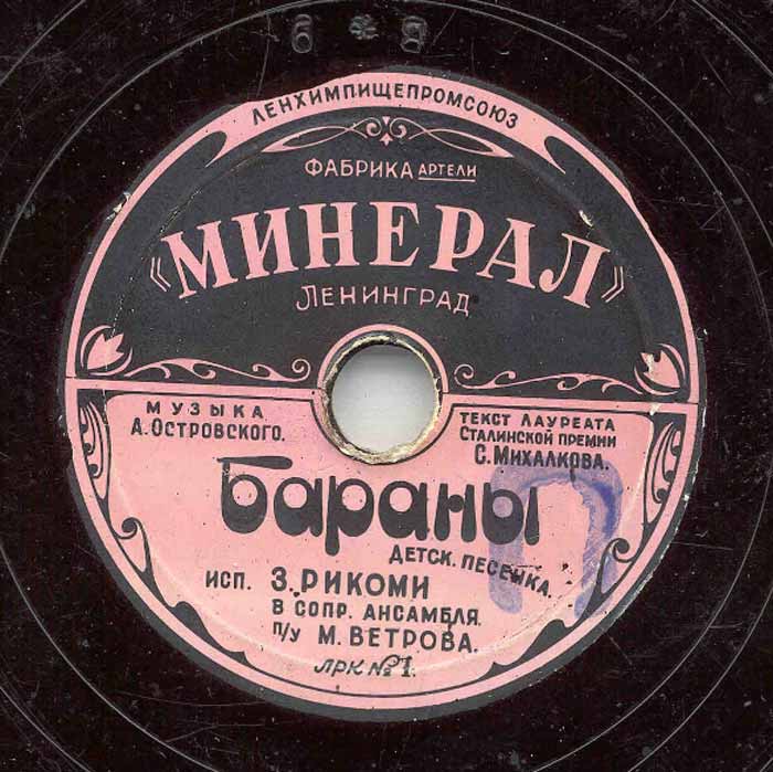 со скоростью вращения 78 об/мин. выпускались на фабрике артели "Минерал"