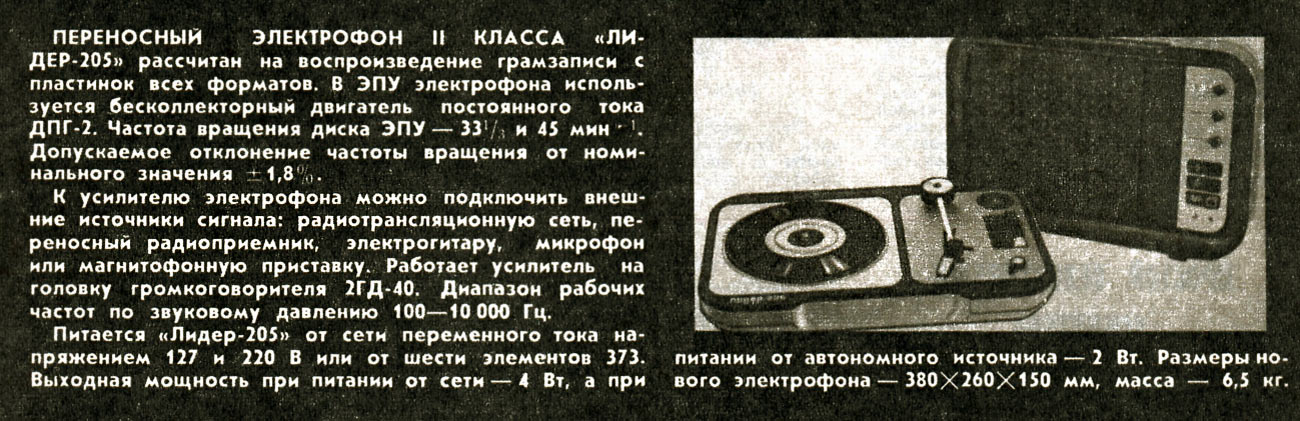 Описание электрофона "Лидер-205"