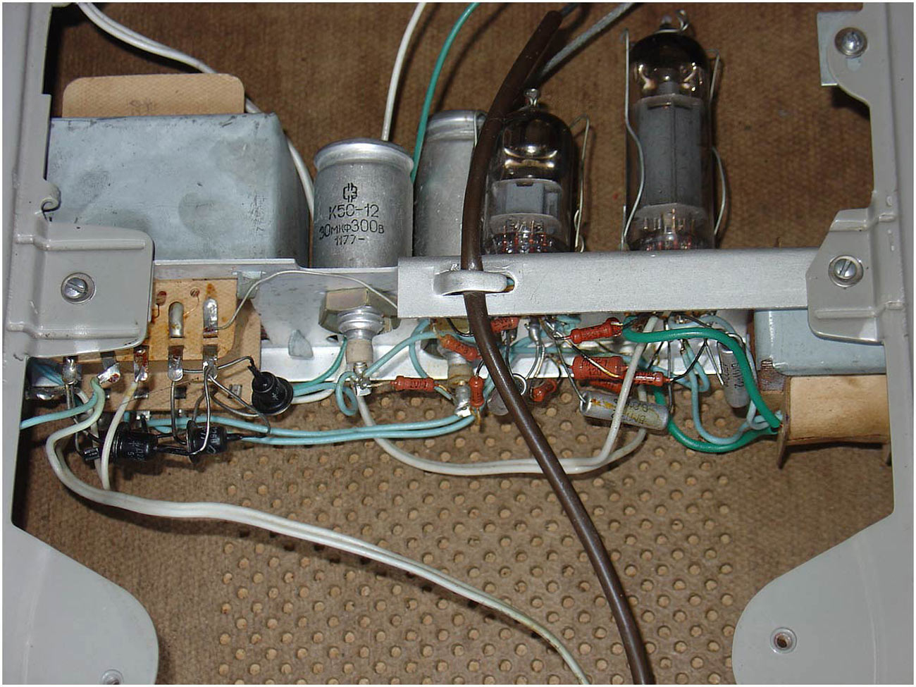 Схема электрофона собрана на 2-х лампах 6Н2П и 6П14П. В АС применёно два