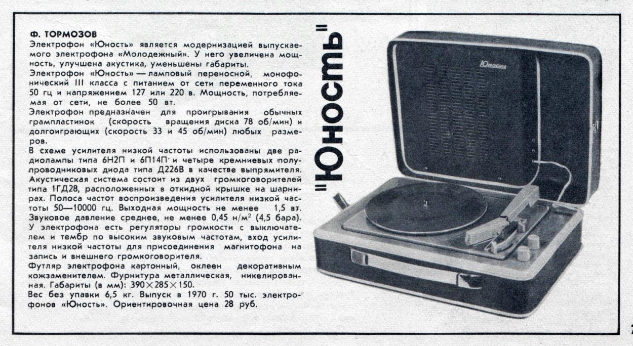 громкоговорителя типа 1ГД-28. С 1970 года ЭФ ''Юность-301'' заменил собой