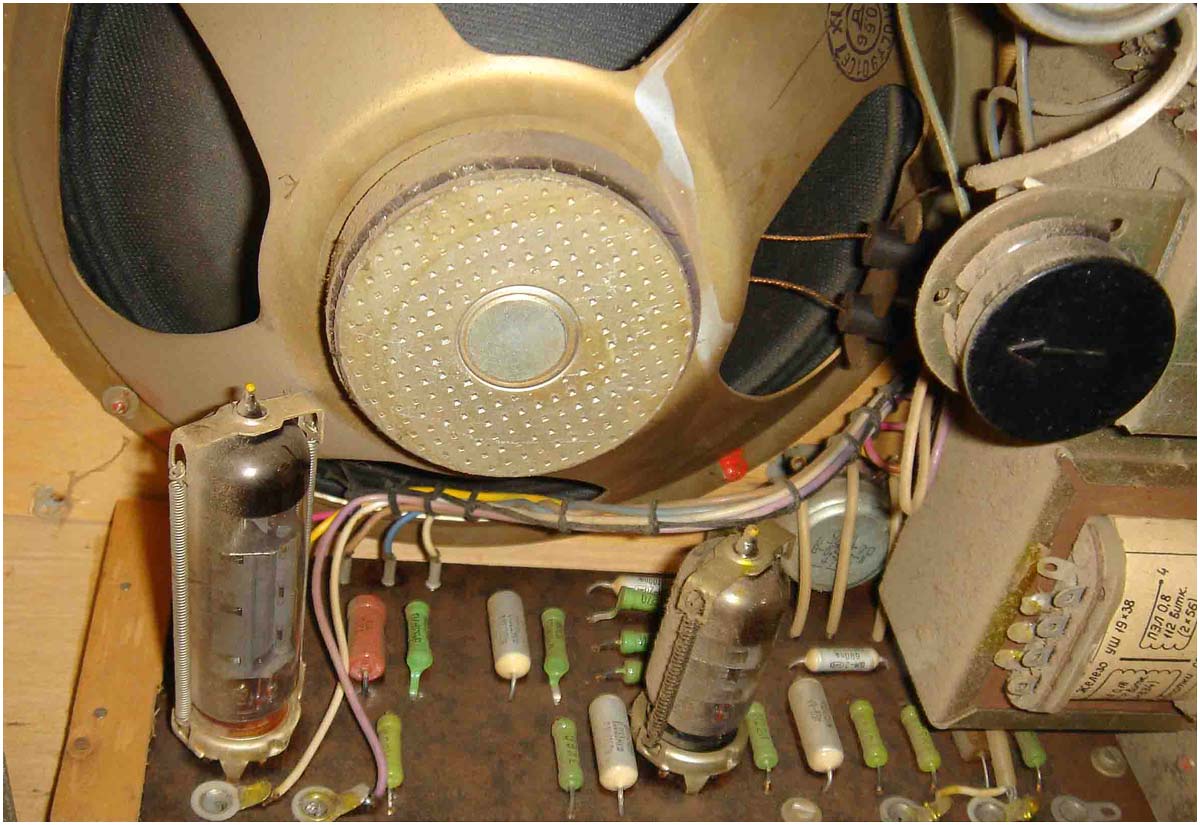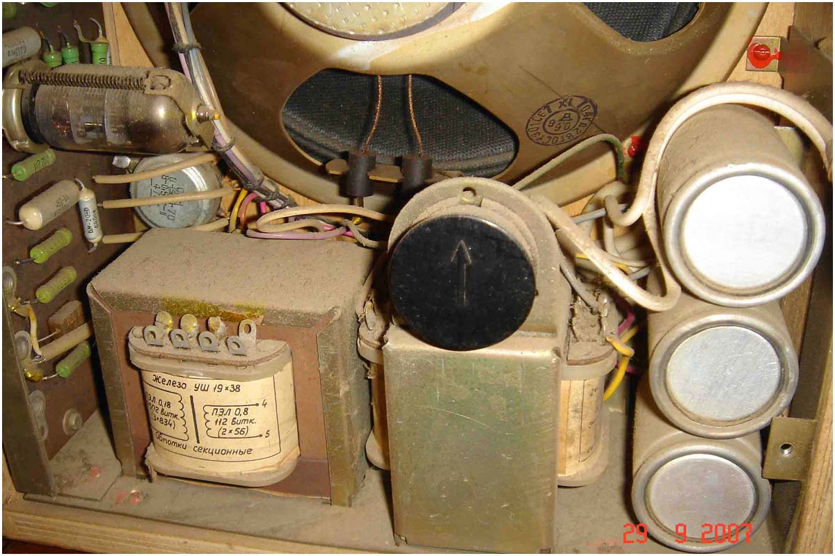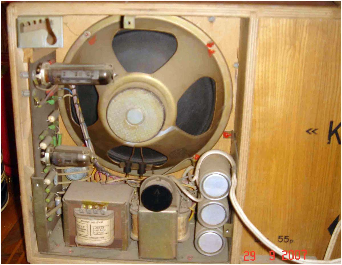двухламповый усилитель, громкоговоритель 4ГД-28 и выпрямитель. В откидной