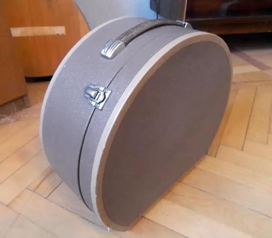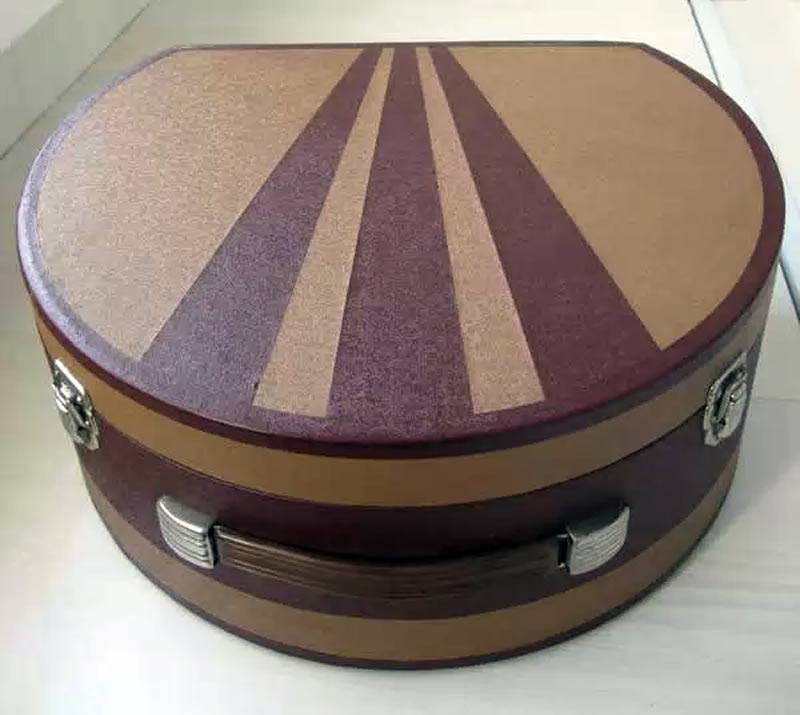 выполнен в овальном картонном ящике, оклеенном павинолом или дермантином.