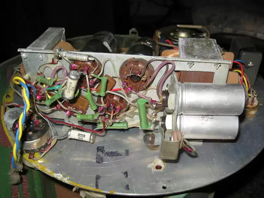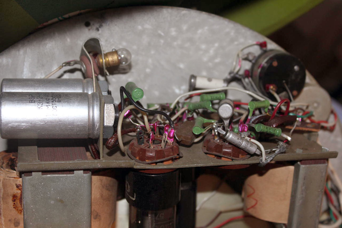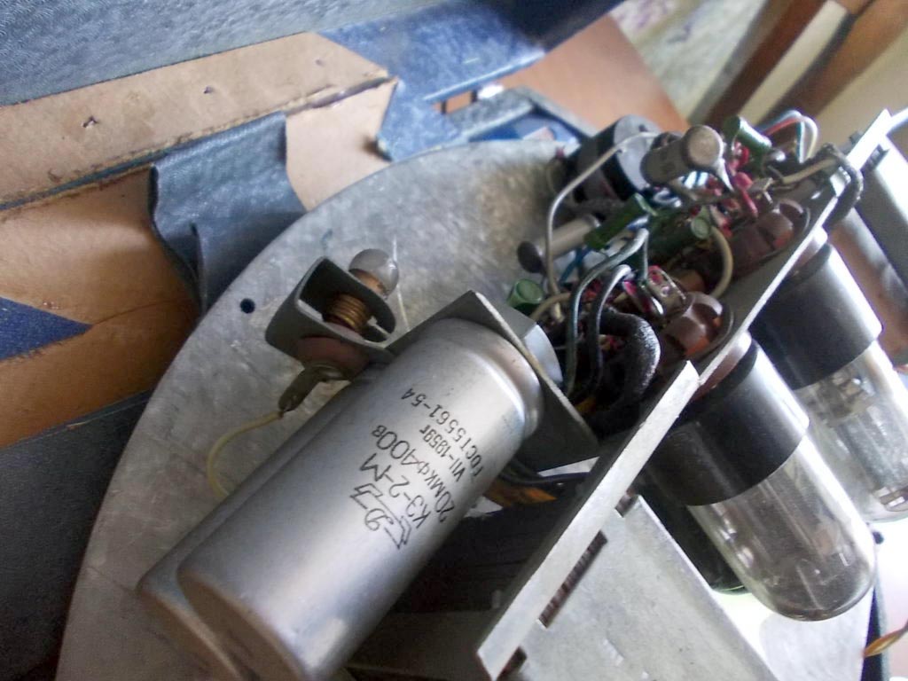 громкоговоритель 1ГД-9 укрепленный на задней стенке ящика. В трехкаскадном