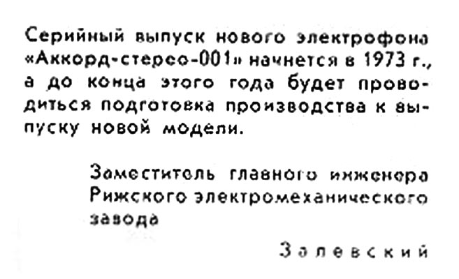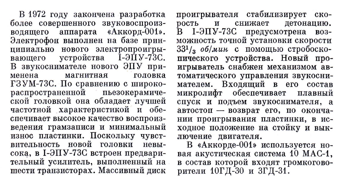 сетевые транзисторные "Аккорд-101-стерео" и "Аккорд-001-стерео" с 1973